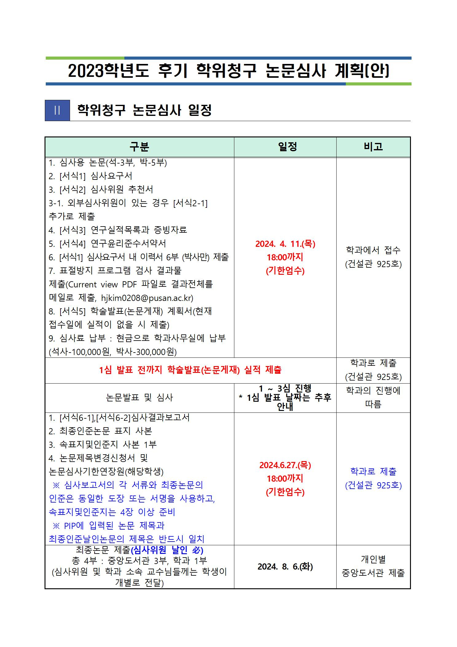 2024학년도 1학기 일반대학원 학위청구논문 심사계획 안내