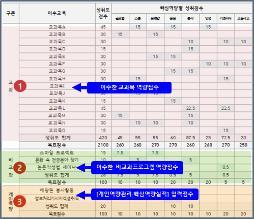 교과, 비교과 활동 외, 개인역량 활동은 어떻게 관리하고 있는지,