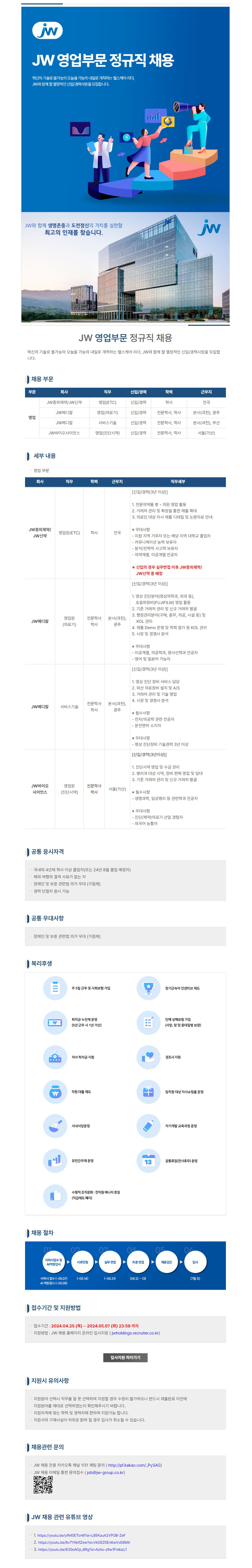 [학부] JW 영업부문 정규직 채용 공고 안내