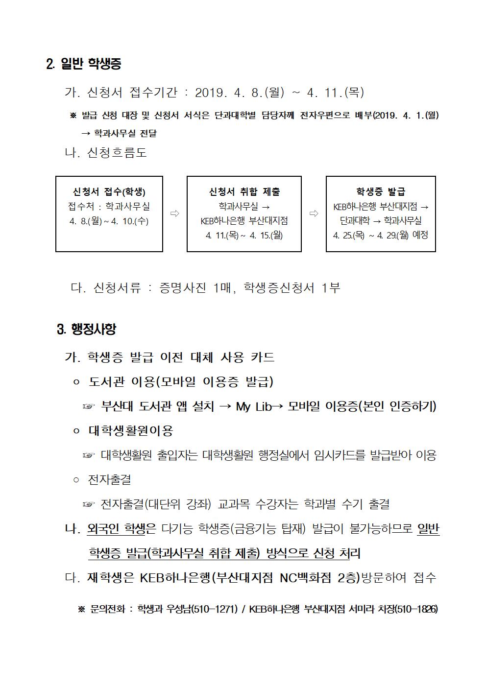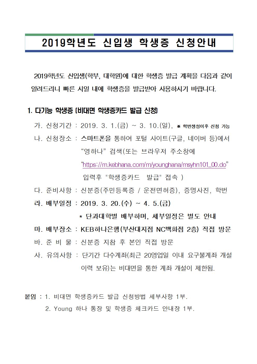 2019학년도 신입생(학부, 대학원) 학생증 신청안내