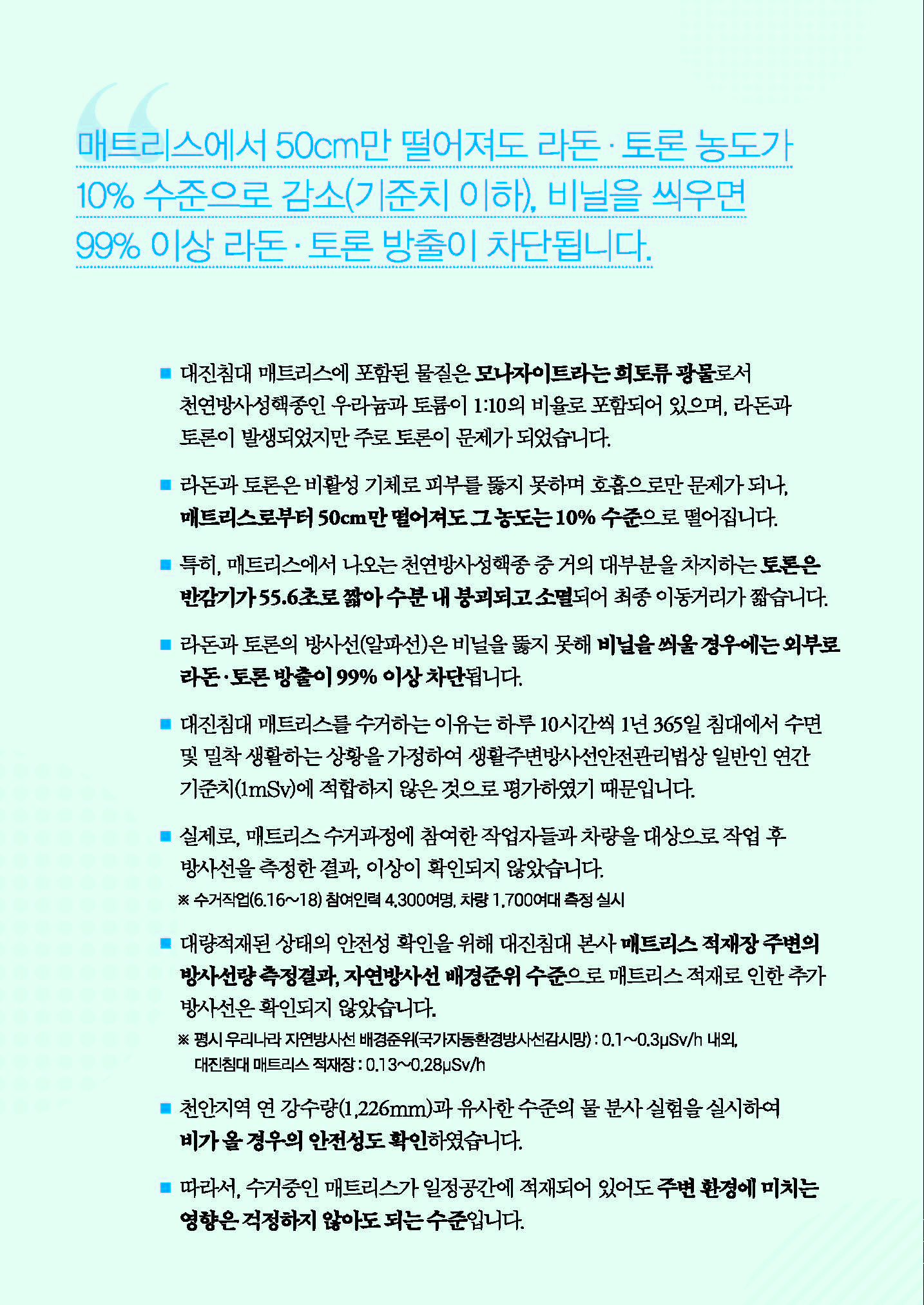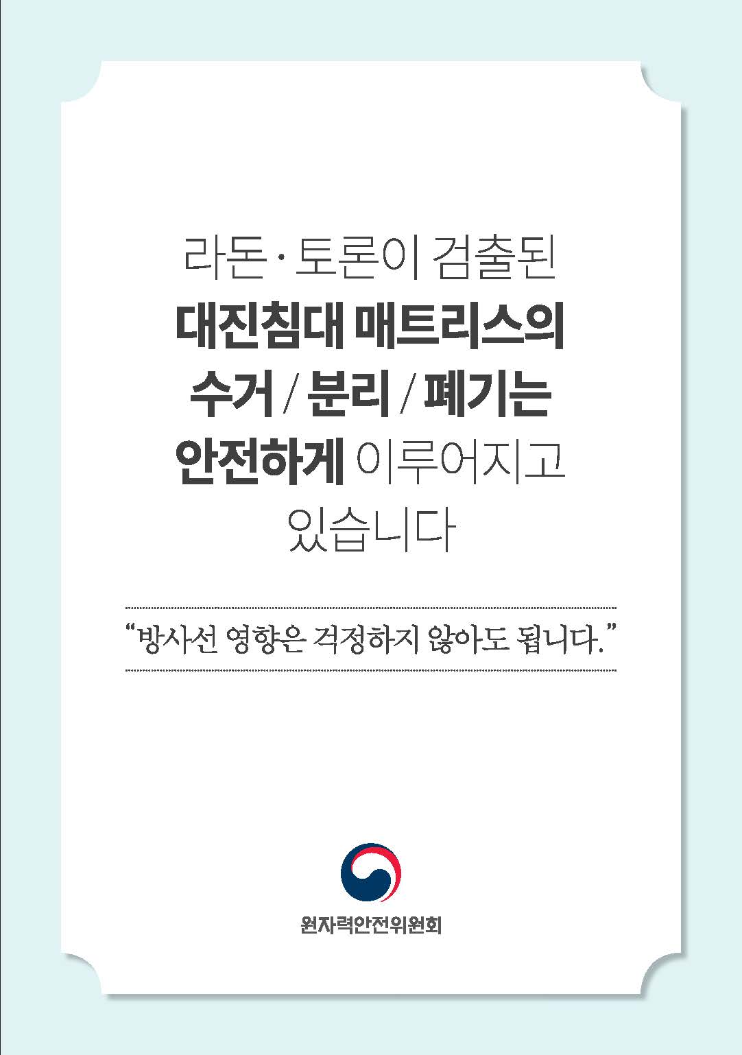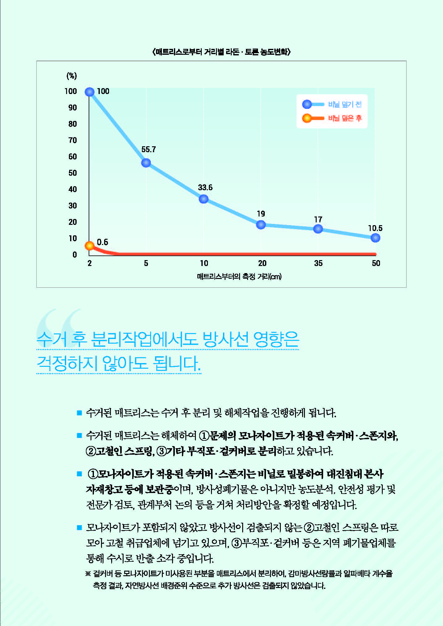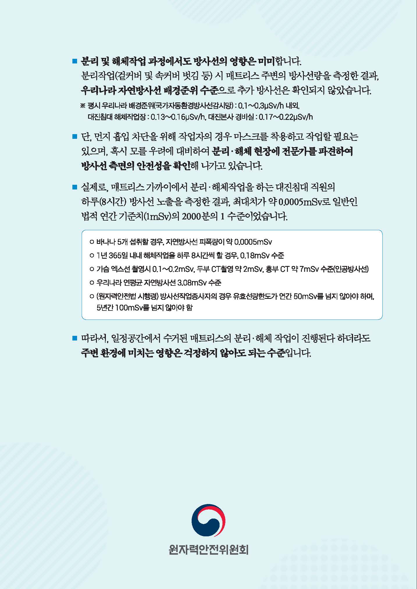 [원자력안전위원회] 라돈,토론이 검출된 매트리스 수거/분리/폐기는 안전성 관련 안내