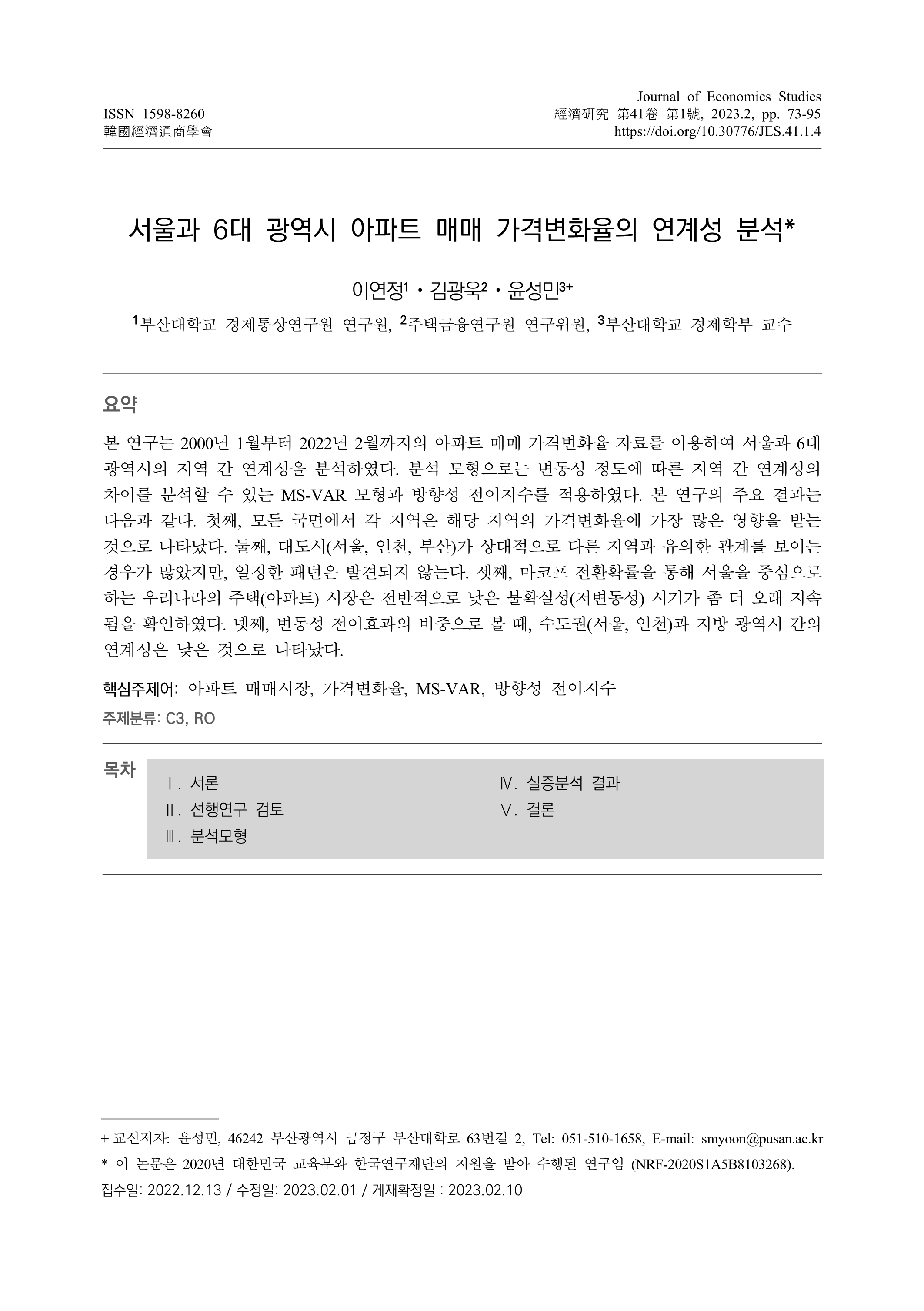 서울과 6대 광역시 아파트 매매 가격변화율의 연계성 분석