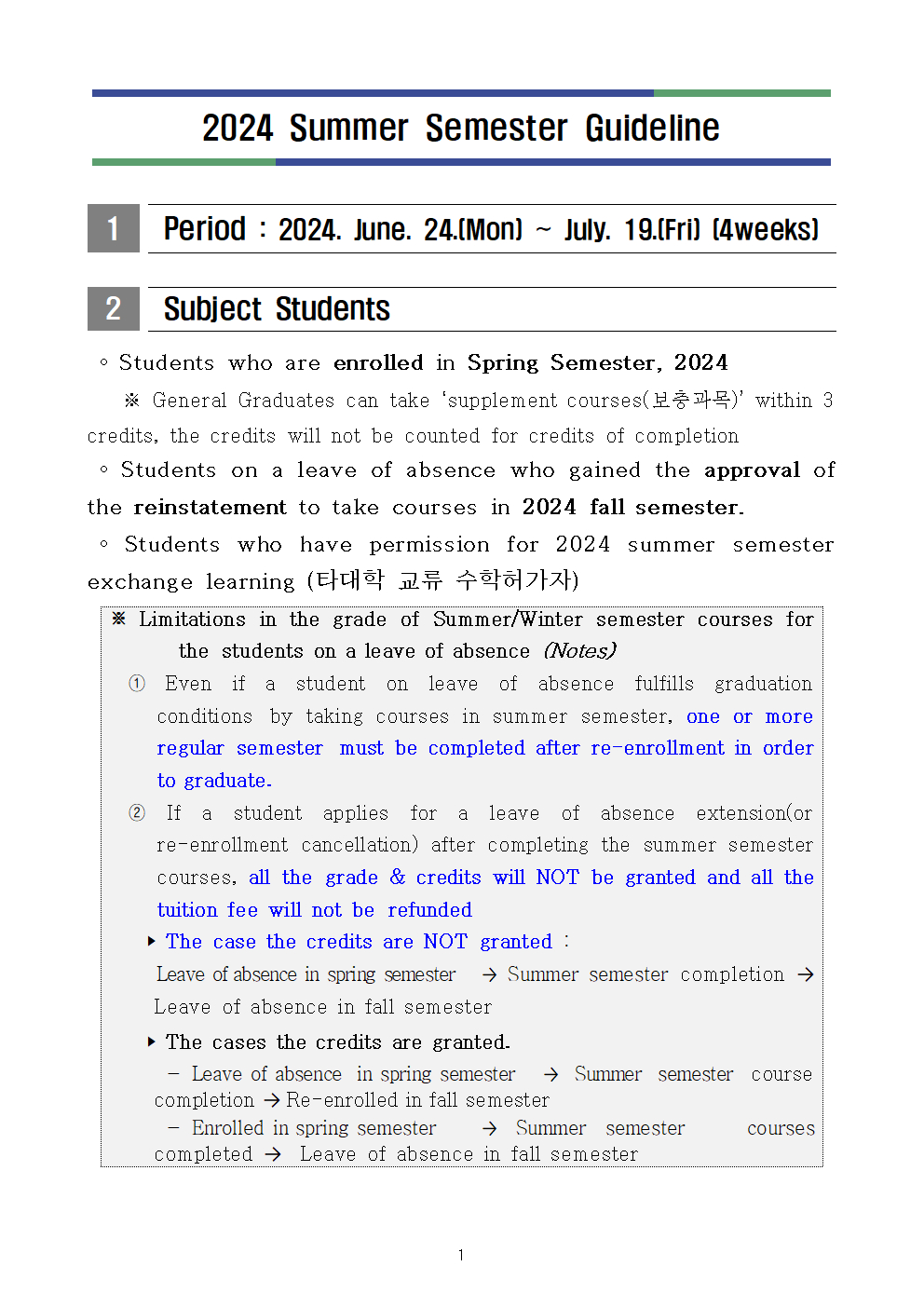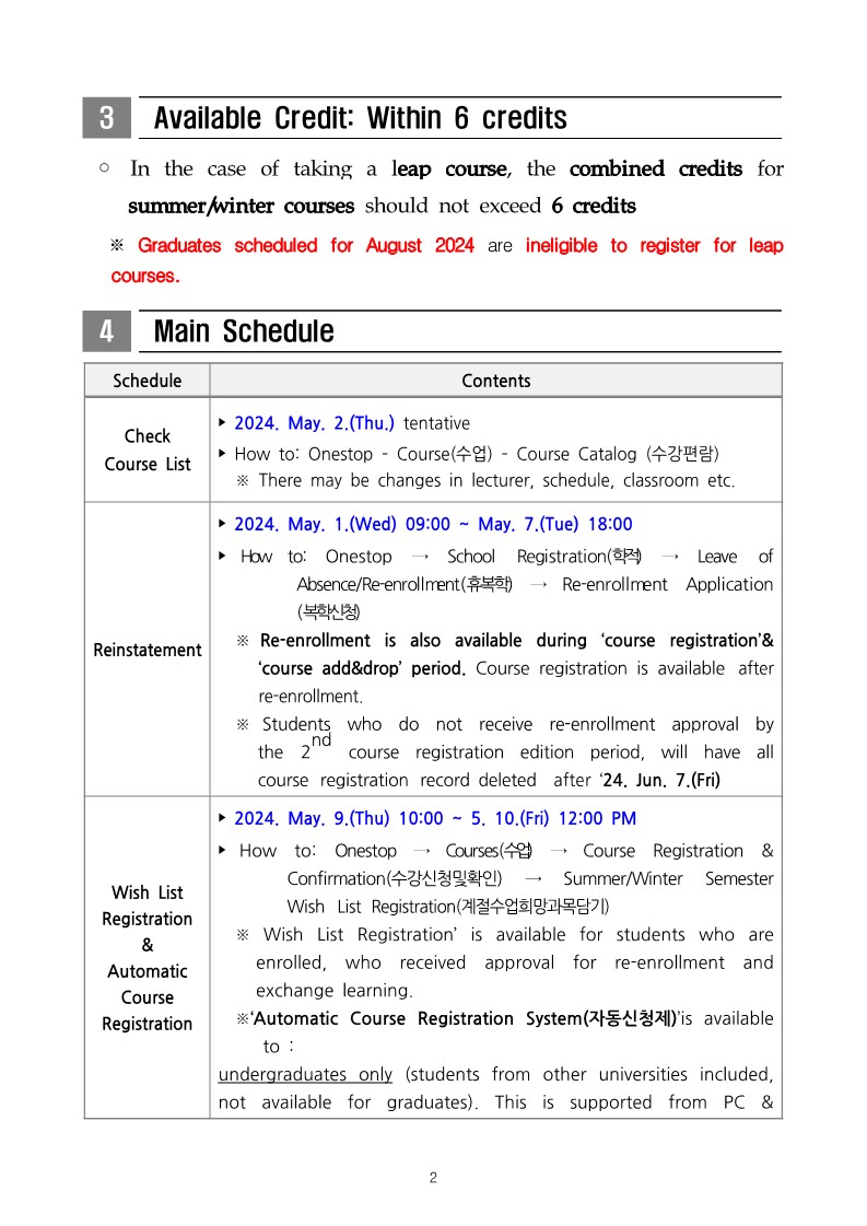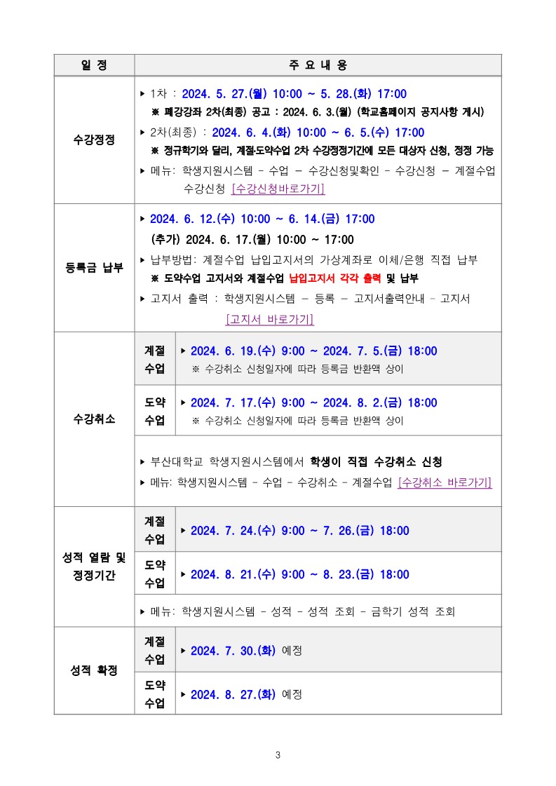 [학사] 2024학년도 여름계절수업 운영계획 안내/ 2024 Summer Semester Guideline