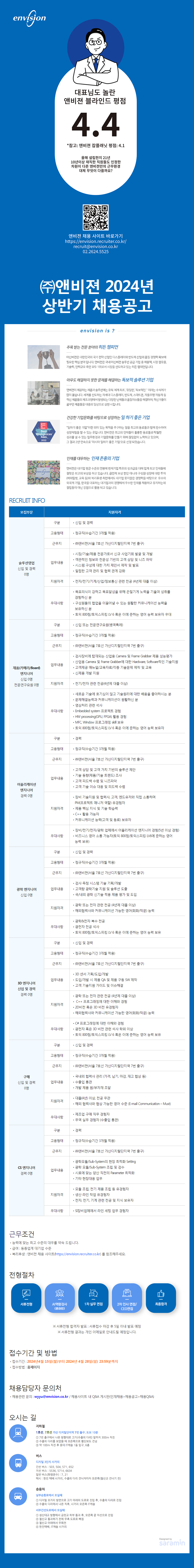 [앤비젼] 블라인드 평점 4.4 앤비젼 상반기 공채 모집 공고(~24.4.28)