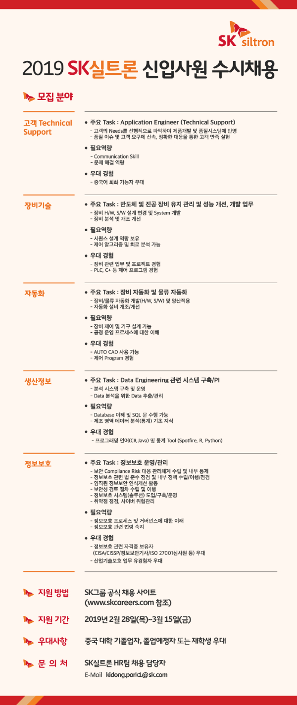[SK실트론] 2019 SK실트론 신입사원 수시채용