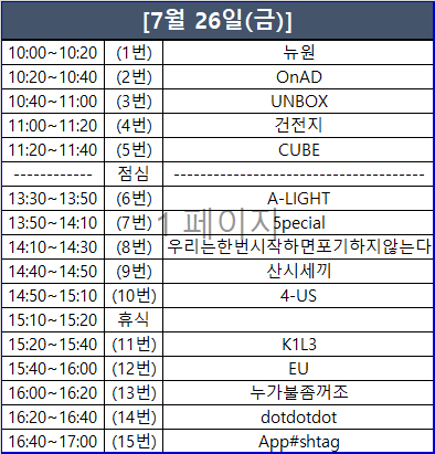 ※ 실제 발표시간에 따라 당일 발표시간이 다소 변경 가능함