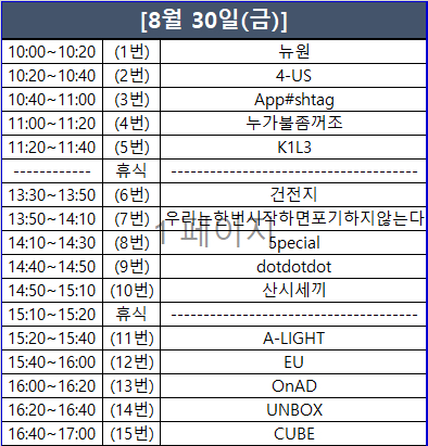 ※ 실제 발표시간에 따라 당일 발표시간이 다소 변경 가능함
