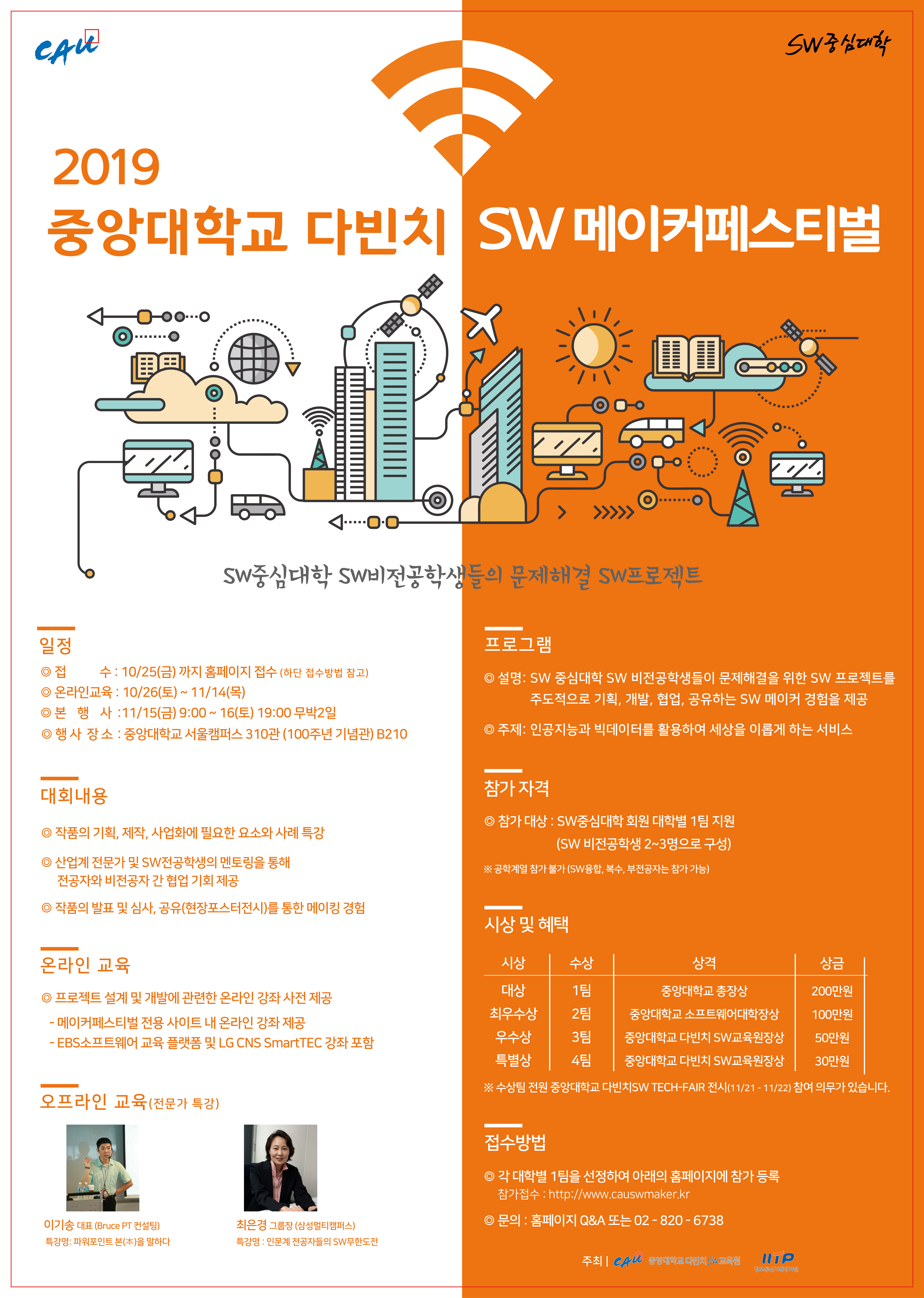 - 최우수상: 중앙대학교 소프트웨어대학장상 / 100만원 / 2팀