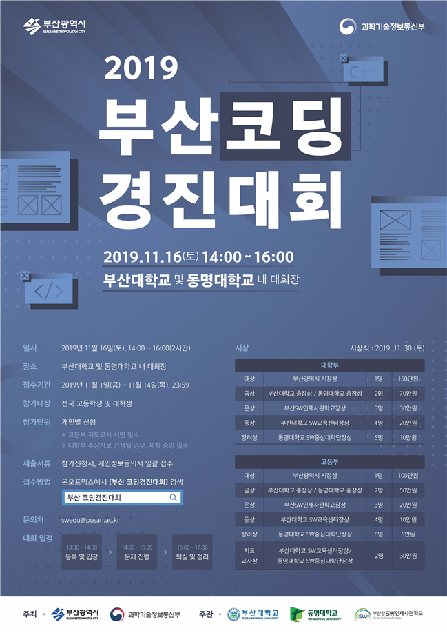 부산광역시, 과학기술정보통신부가 주최하고 부산대학교, 동명대학교, 부산SW인재사관학교가 공동으로 주관하는 대회로