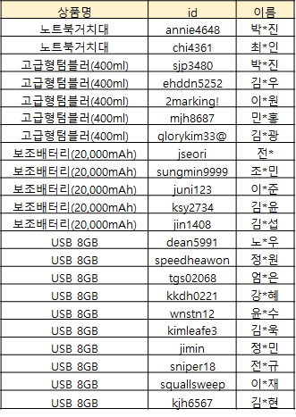 당첨자께서는 센터로 방문하시어 경품을 수령해주시기 바랍니다.