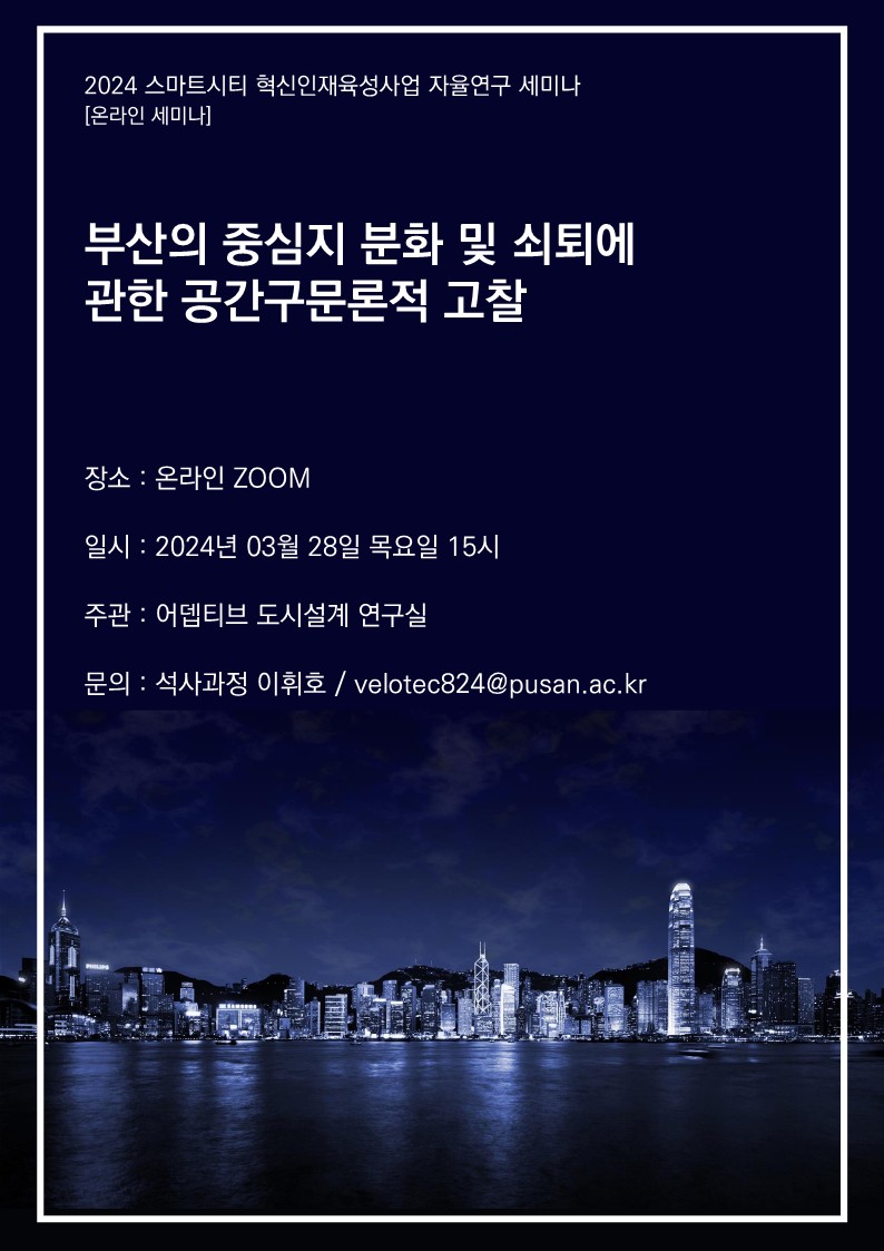 스마트시티 혁신인재육성사업 자율연구 세미나 개최(2024.03.28.목)