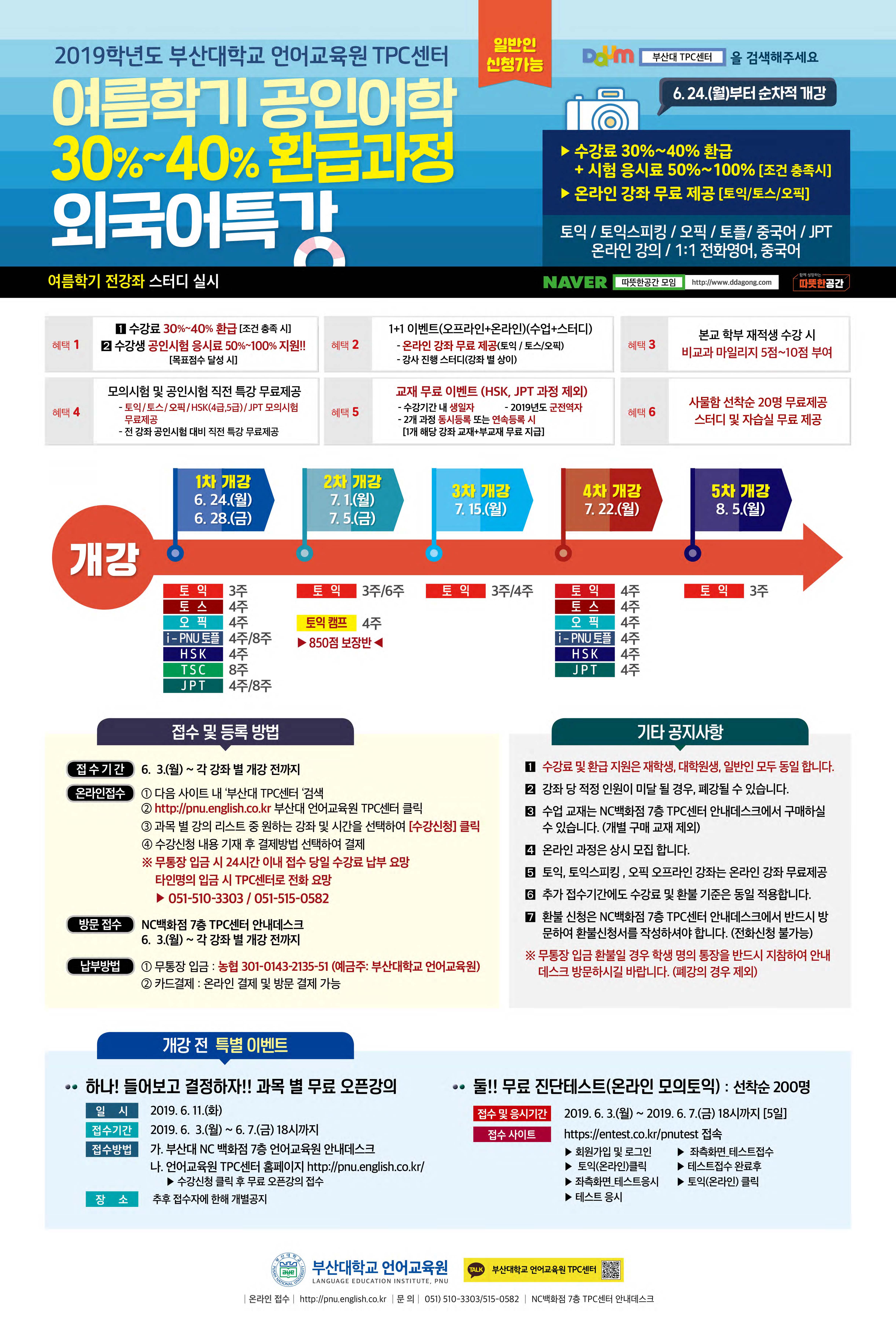 본교 언어교육원에서 여름학기 공인어학 30~40% 환급과정 외국어특강을 운영하오니