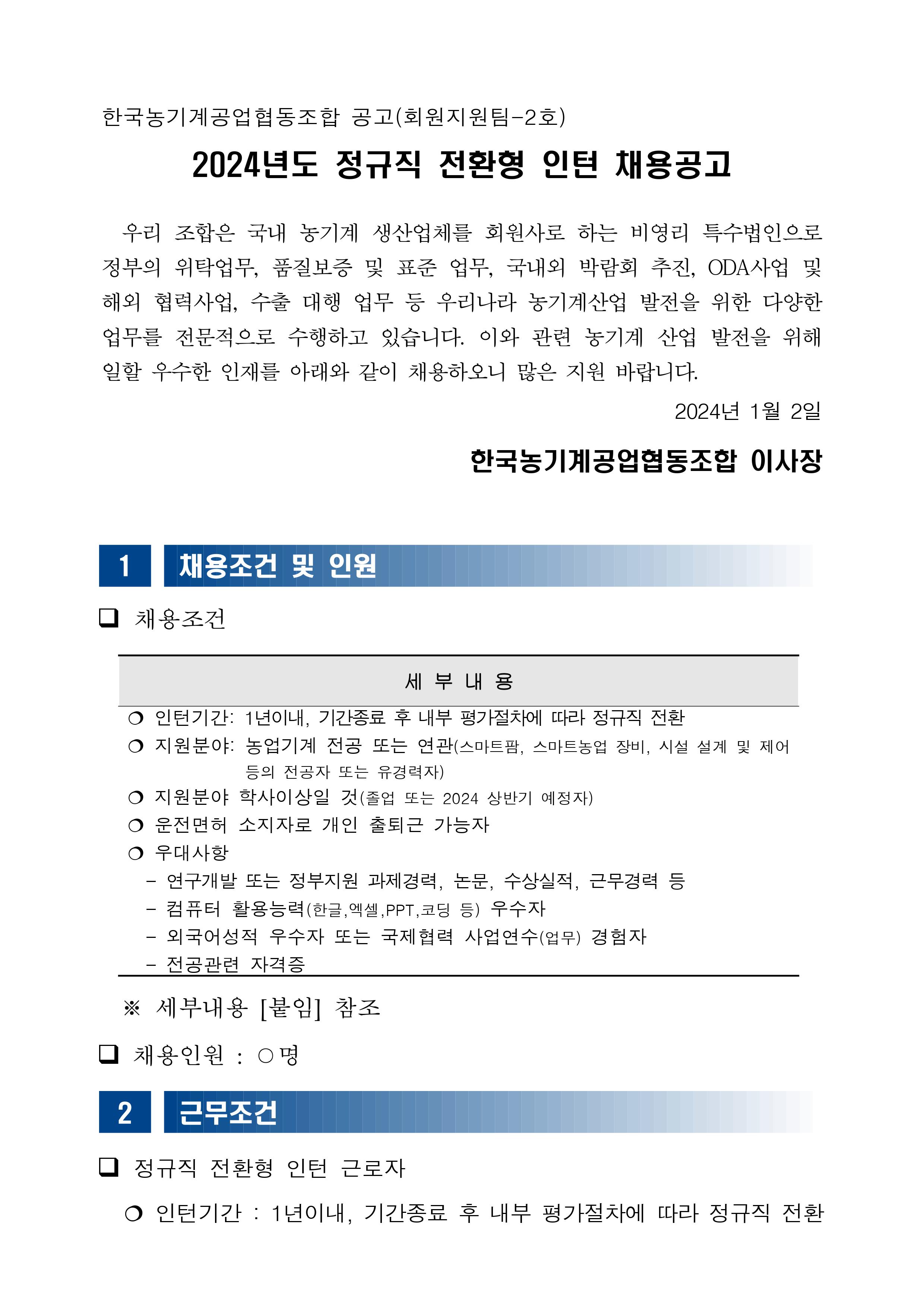 [한국농업기계공동협동조합] 2024년도 정규직 전환형 인턴 채용 공고