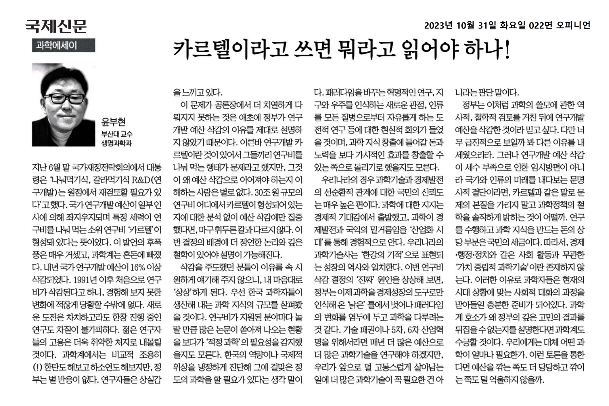 [학과소식] 윤부현 교수님 국제신문 과학에세이(23.10.31.)