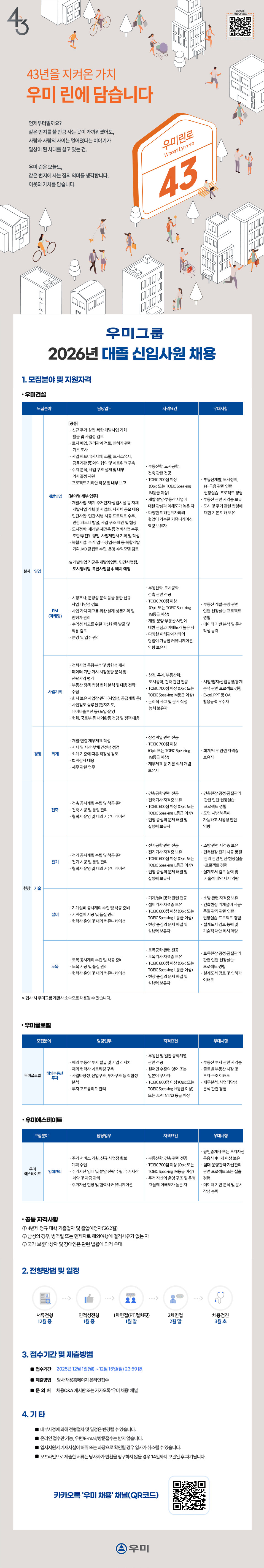 취업전략과에서 우미그룹 추천채용을 아래와 같이 알려드립니다.