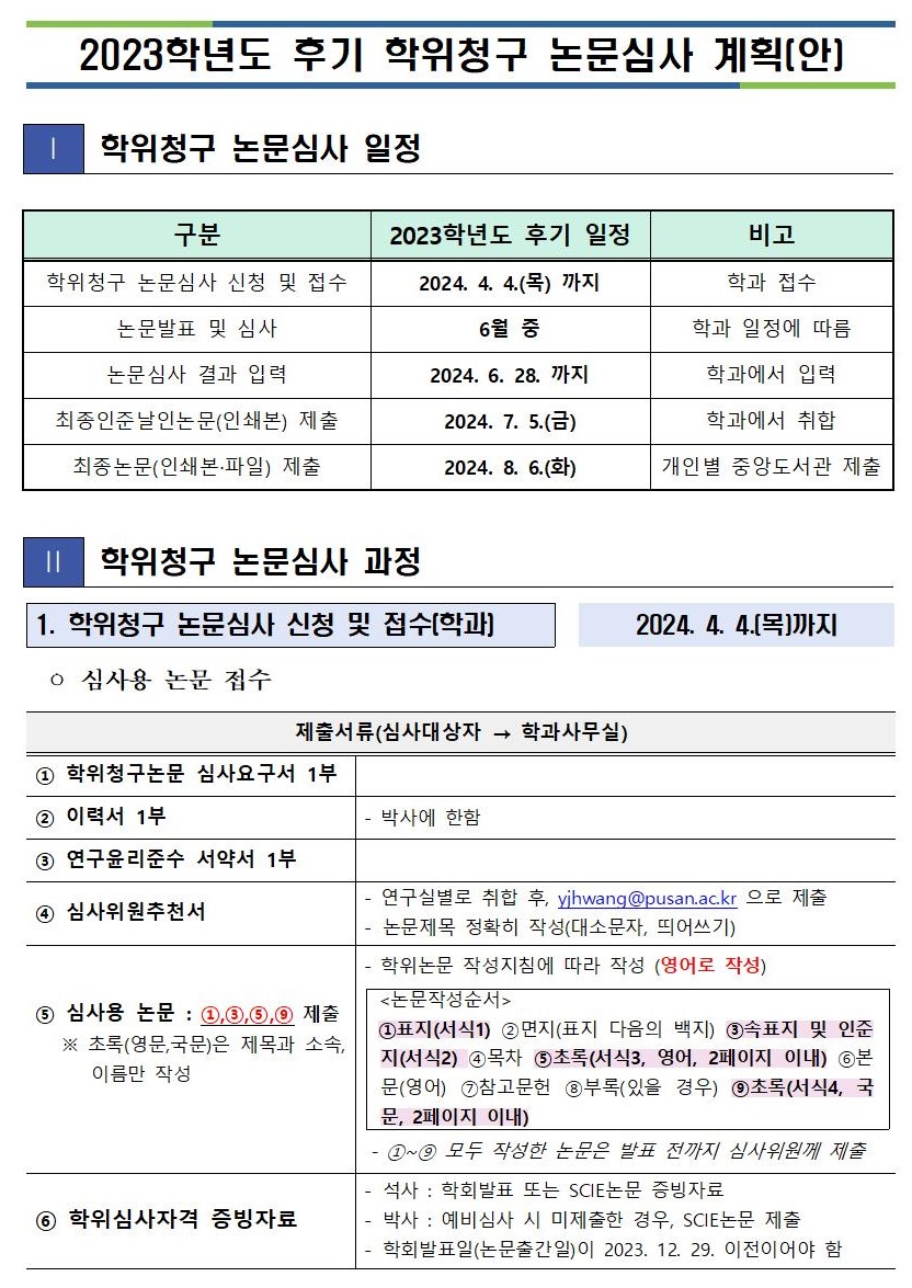 [대학원] 2023학년도 후기 학위청구논문 심사 계획 알림