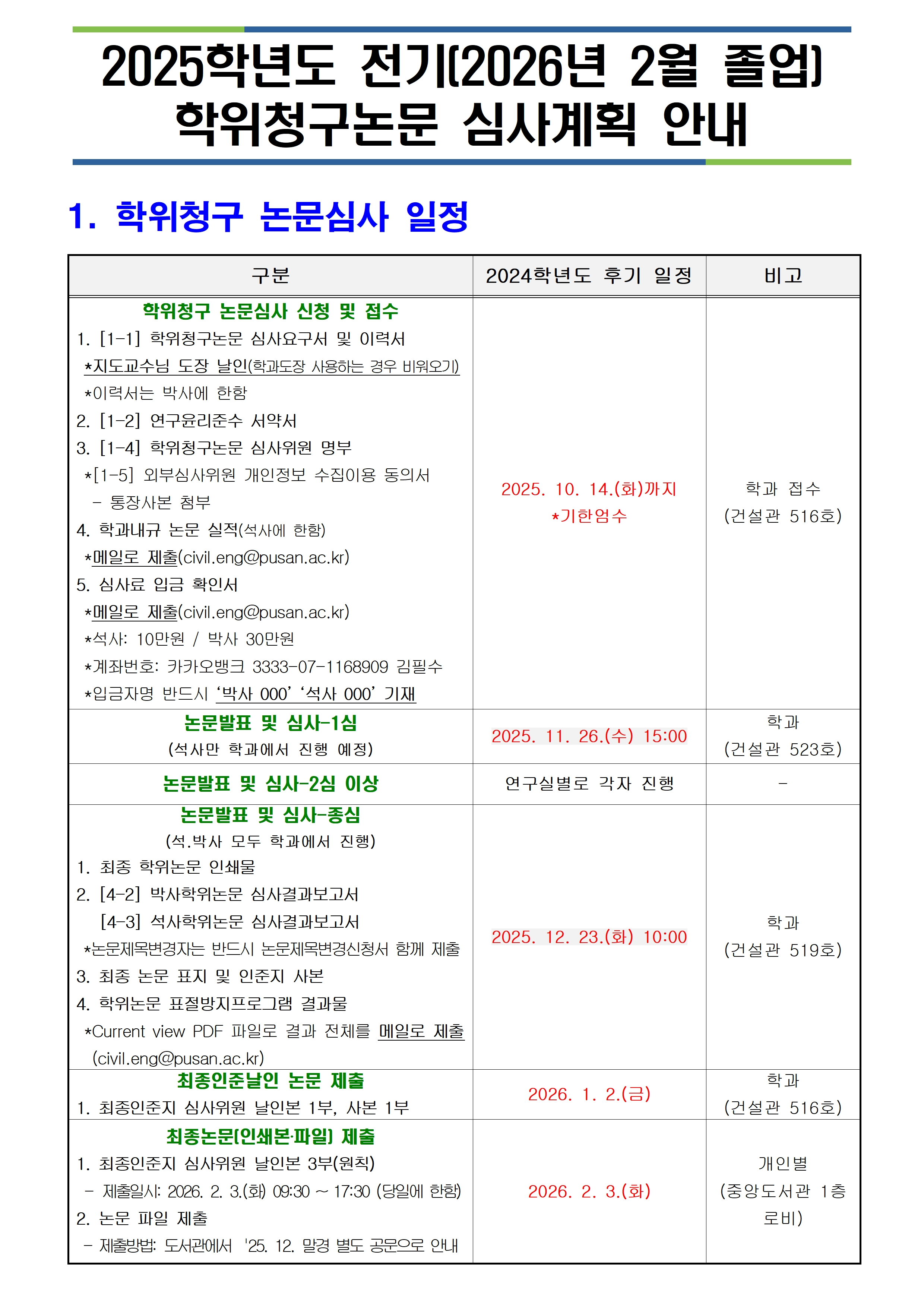 [2025학년도 2학기] 학위청구논문 심사 계획 안내_1심 및 종심 일정 추가
