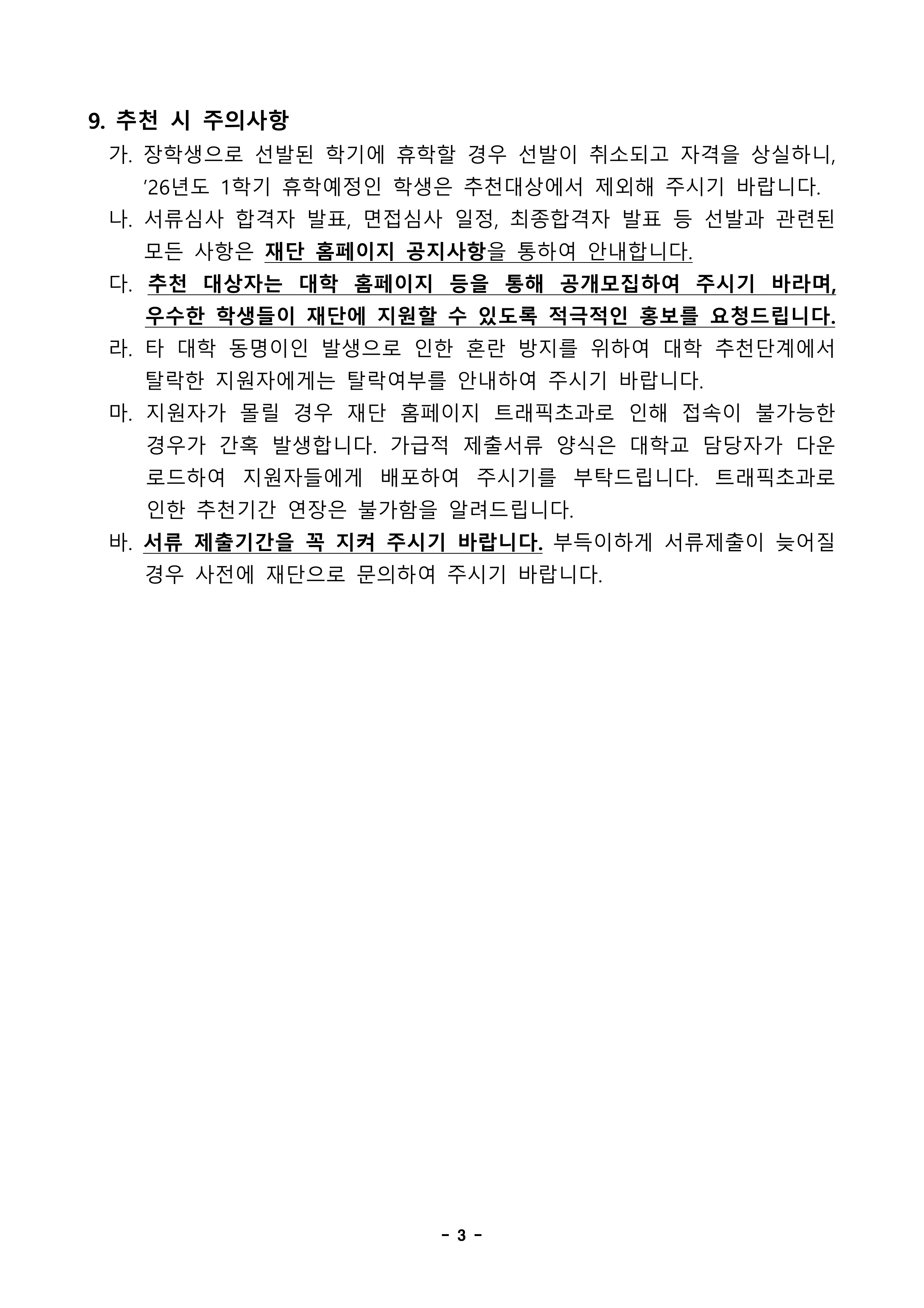 3) 학사경고 및 학칙에 의한 징계사실이 없는 자