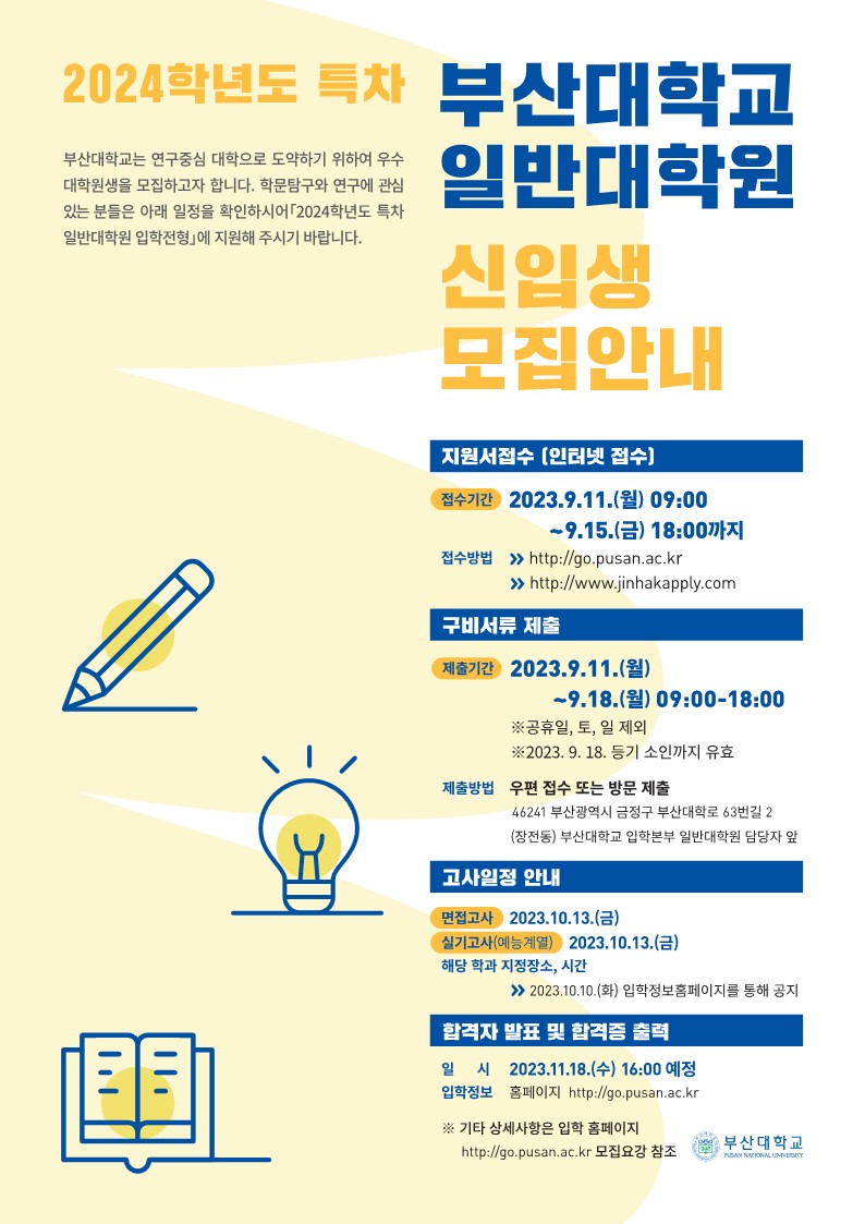2024학년도 특차 일반대학원 신입생 모집안내