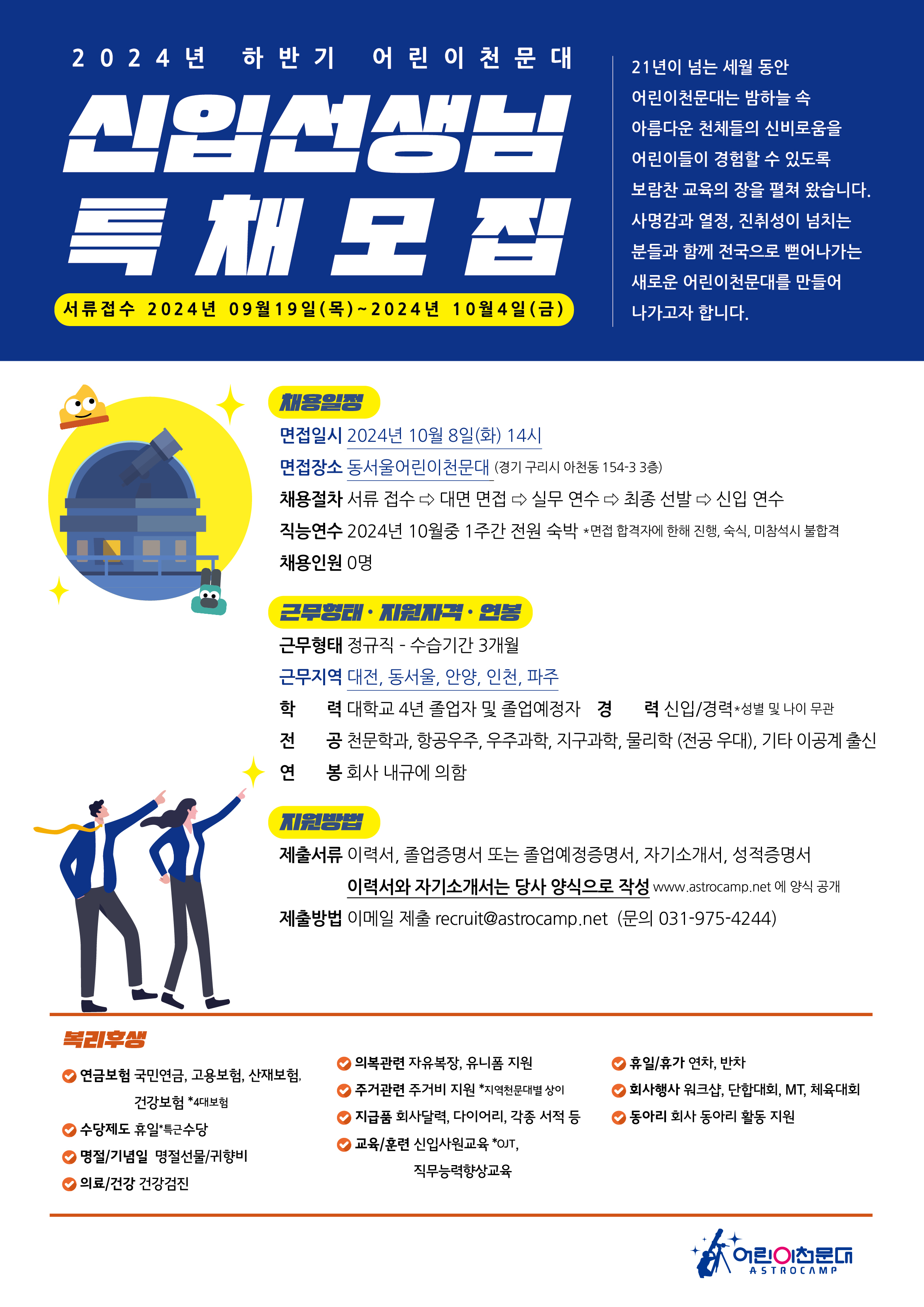 [어린이천문대] 2024년 하반기 신입선생님 특채알림