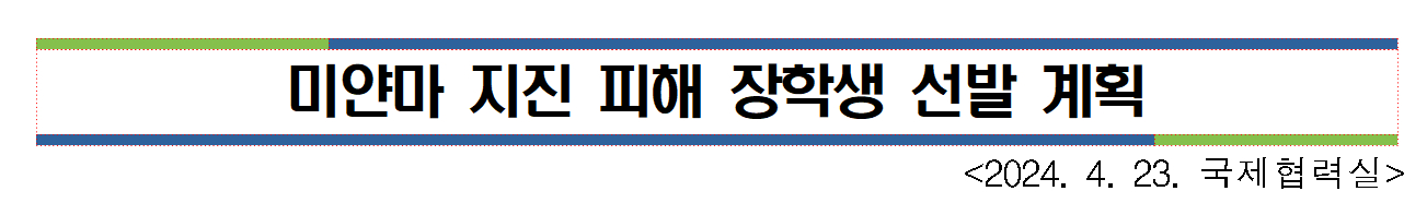 ? 최근 발생한 2025년 미얀마 지진 피해로 물질적?정신적 어려움을 겪는 피해 가정 학생의 경제적 부담 경감을 위한 생활비 성격 장학금 지원