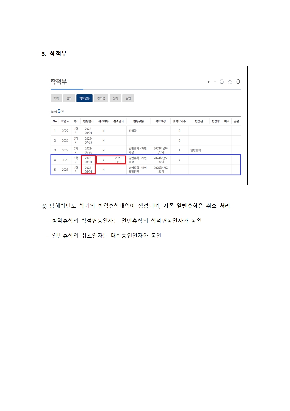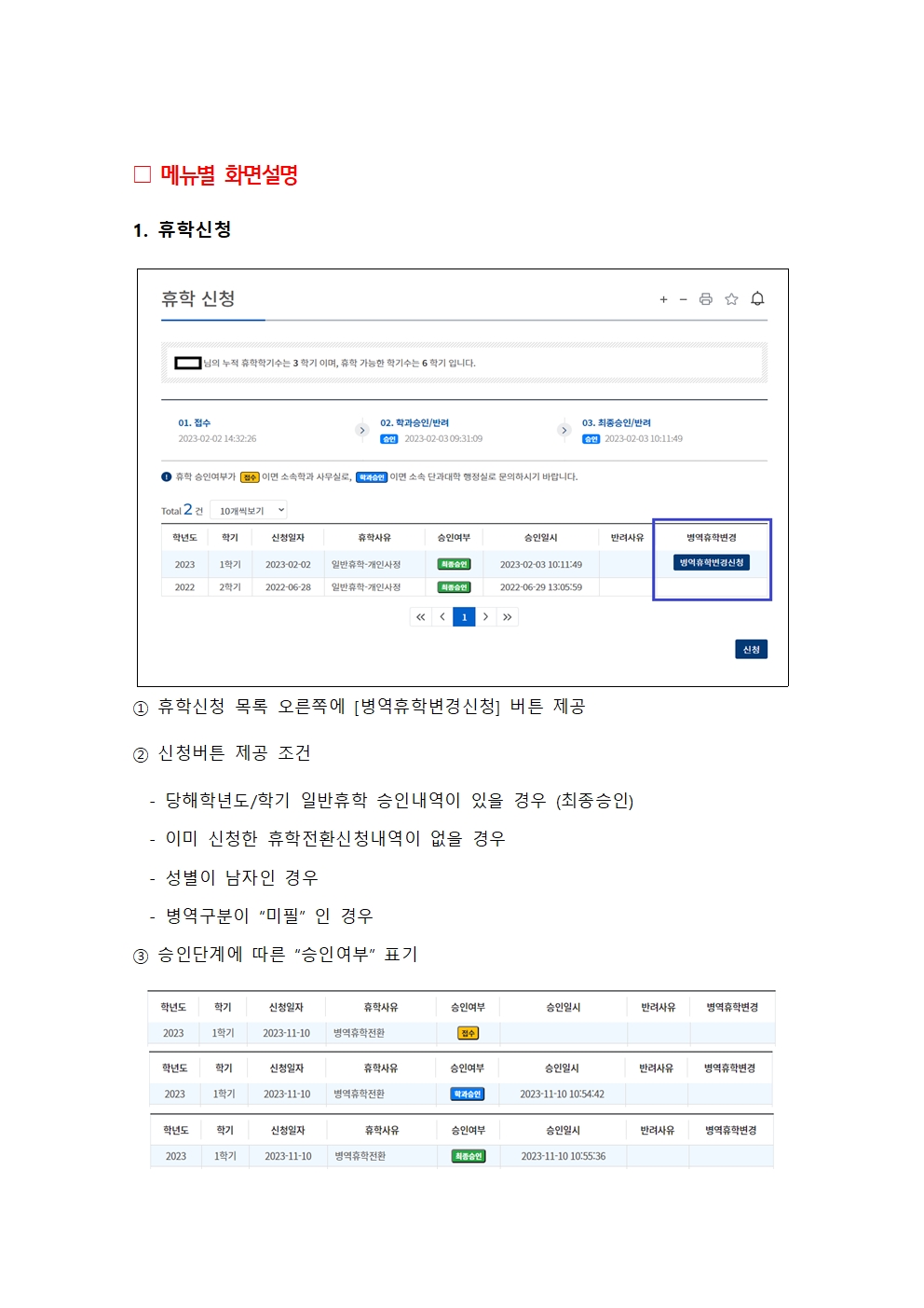 당해학기 휴학전환신청 전산화(학생지원시스템 신청 방법)