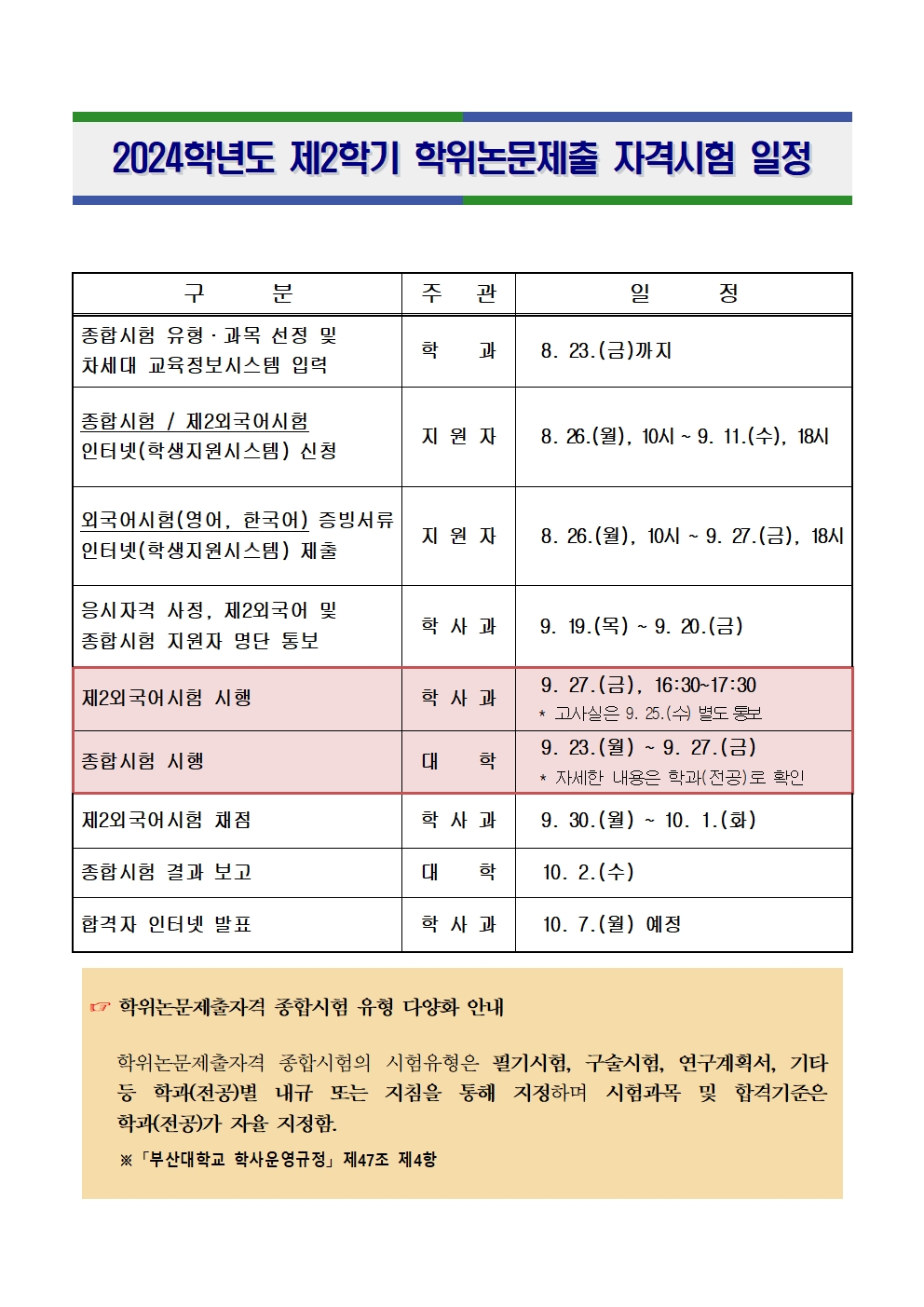 2024학년도 제2학기 학위논문제출 자격시험 시행 안내 | |