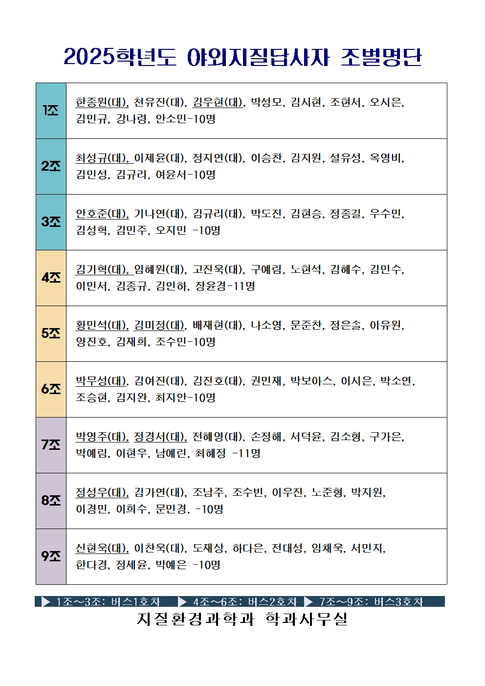 2025학년도 지질환경과학과 전체야외학술답사 일정- 추가 안내