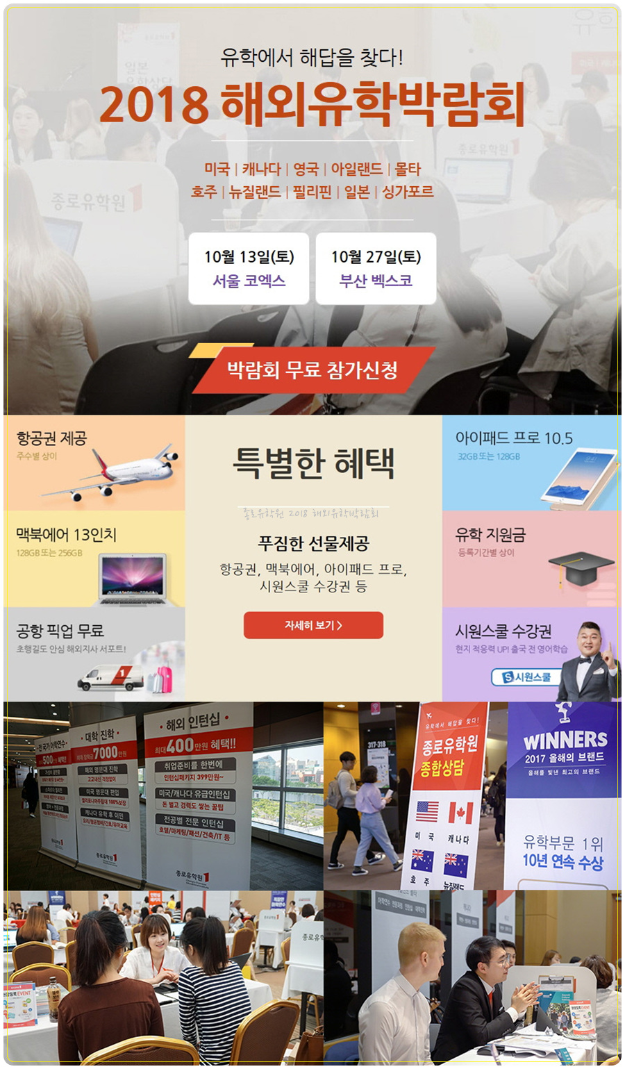 종로유학원에서 주최하는 해외유학박람회에서만 누릴 수 있는 혜택입니다.
