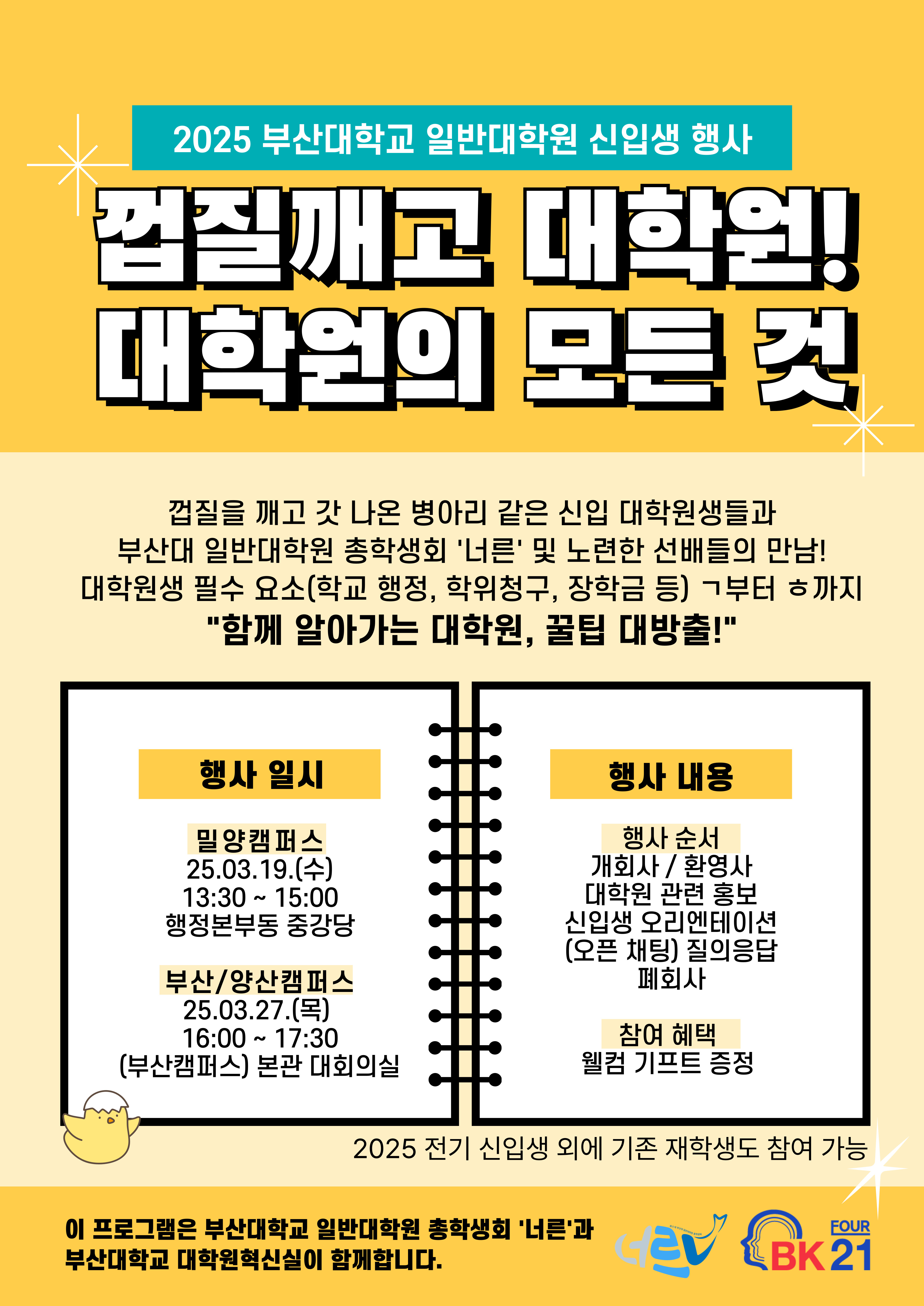 일반대학원 신입생 행사 <껍질깨고 대학원! 대학원의 모든 것> 안내