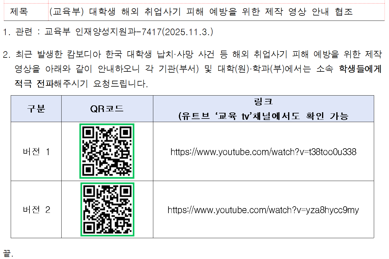 [전체] 대학생 해외 취업사기 피해 예방을 위한 제작 영상 안내