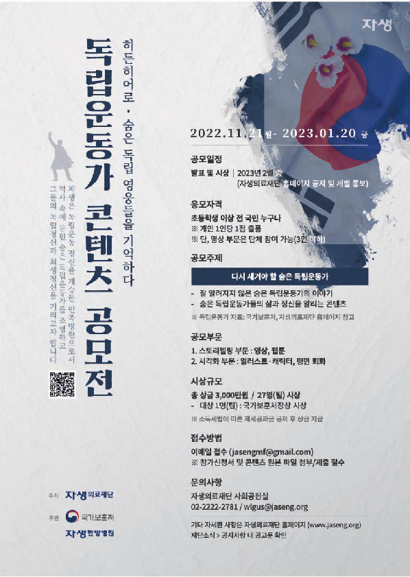 ◈<자생의료재단 X 국가보훈처> 독립운동가 콘텐츠 공모전 ? ‘히든히어로, 숨은 독립 영웅들을 기억하다’