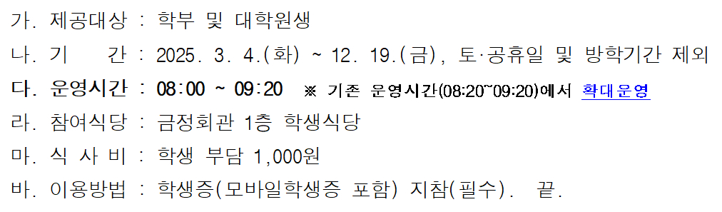 2025년도 「천원의 아침밥」 시행 안내