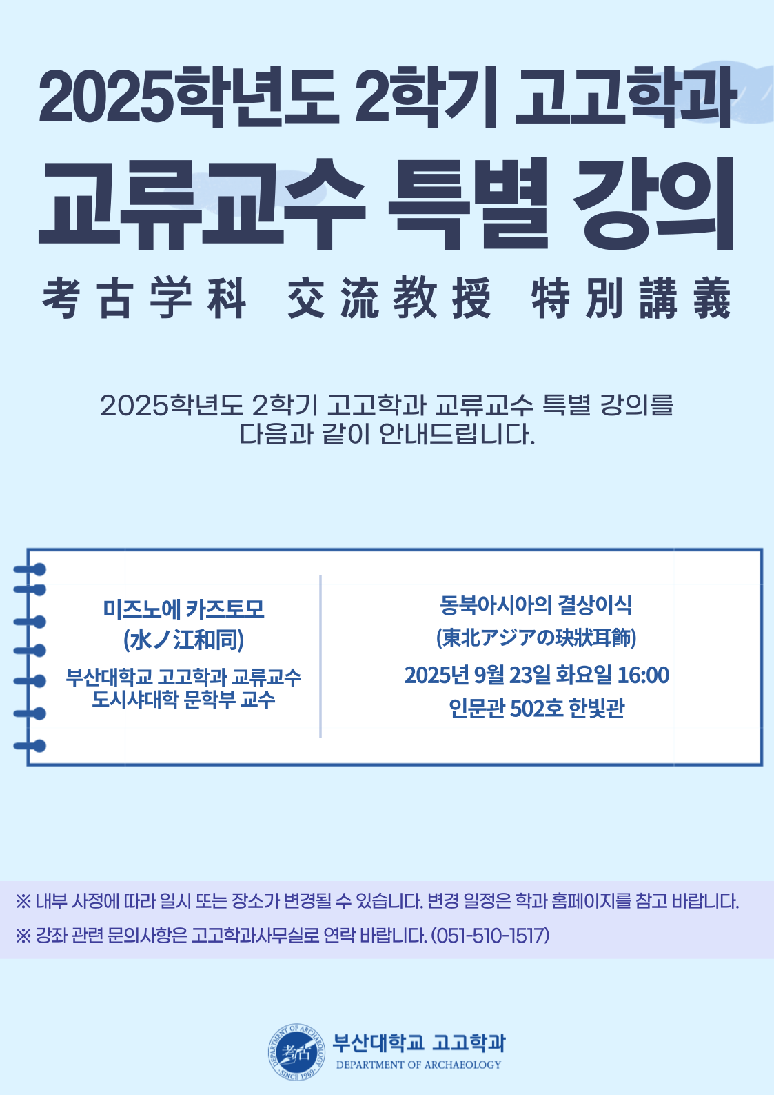 2025학년도 2학기 고고학과 교류교수 특별 강의 안내