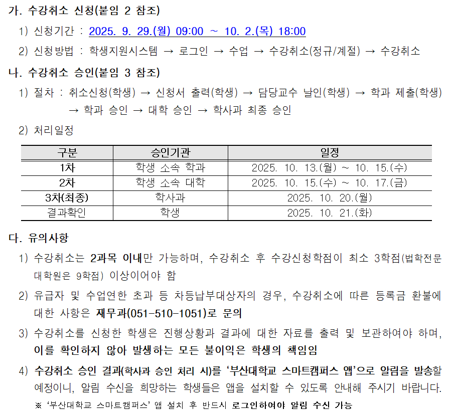 2025학년도 2학기 대학원과정 수강취소(W) 안내