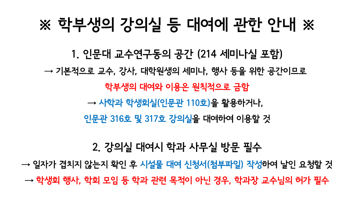 [기타] [학부생 필독] 강의실 등 대여에 관한 안내