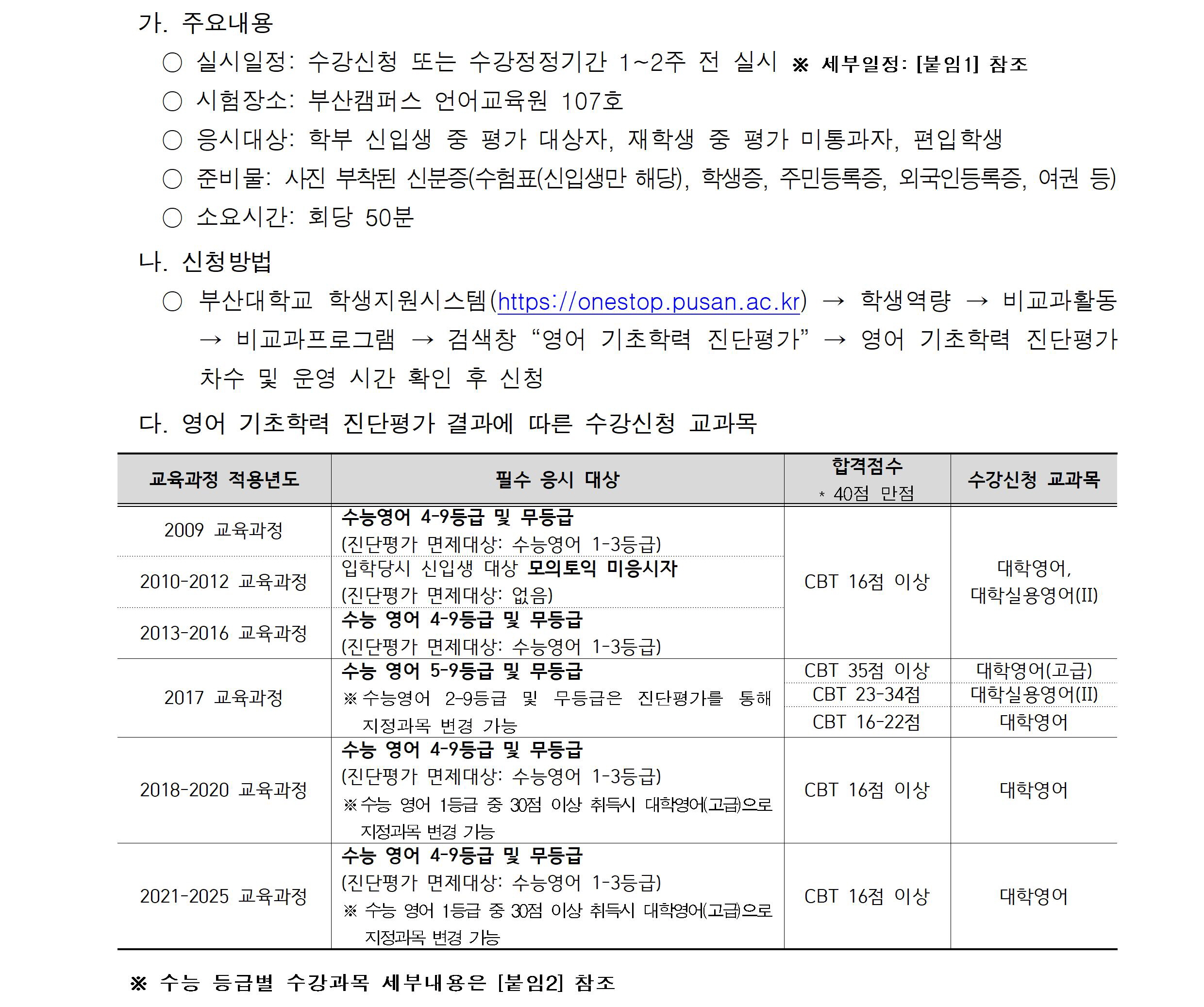 [학사일정] 2025년도 영어 기초학력 진단평가 실시 안내
