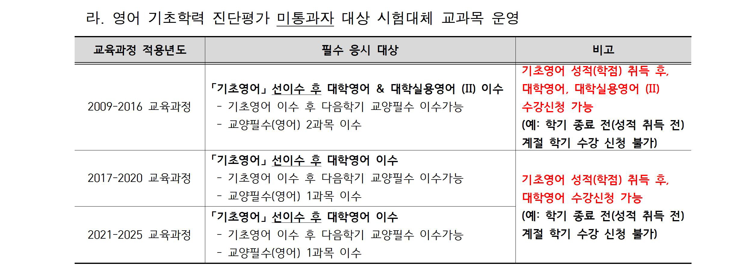 2025학년도 교양필수(영어) 수강지도 참고사항 안내문(학과용) 1부.hwp