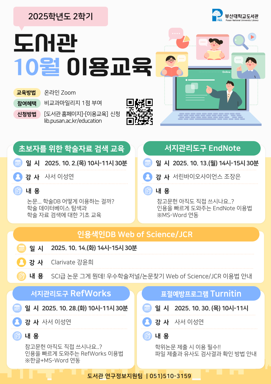 [비교과] 2025학년도 10월 도서관 이용교육 일정 안내
