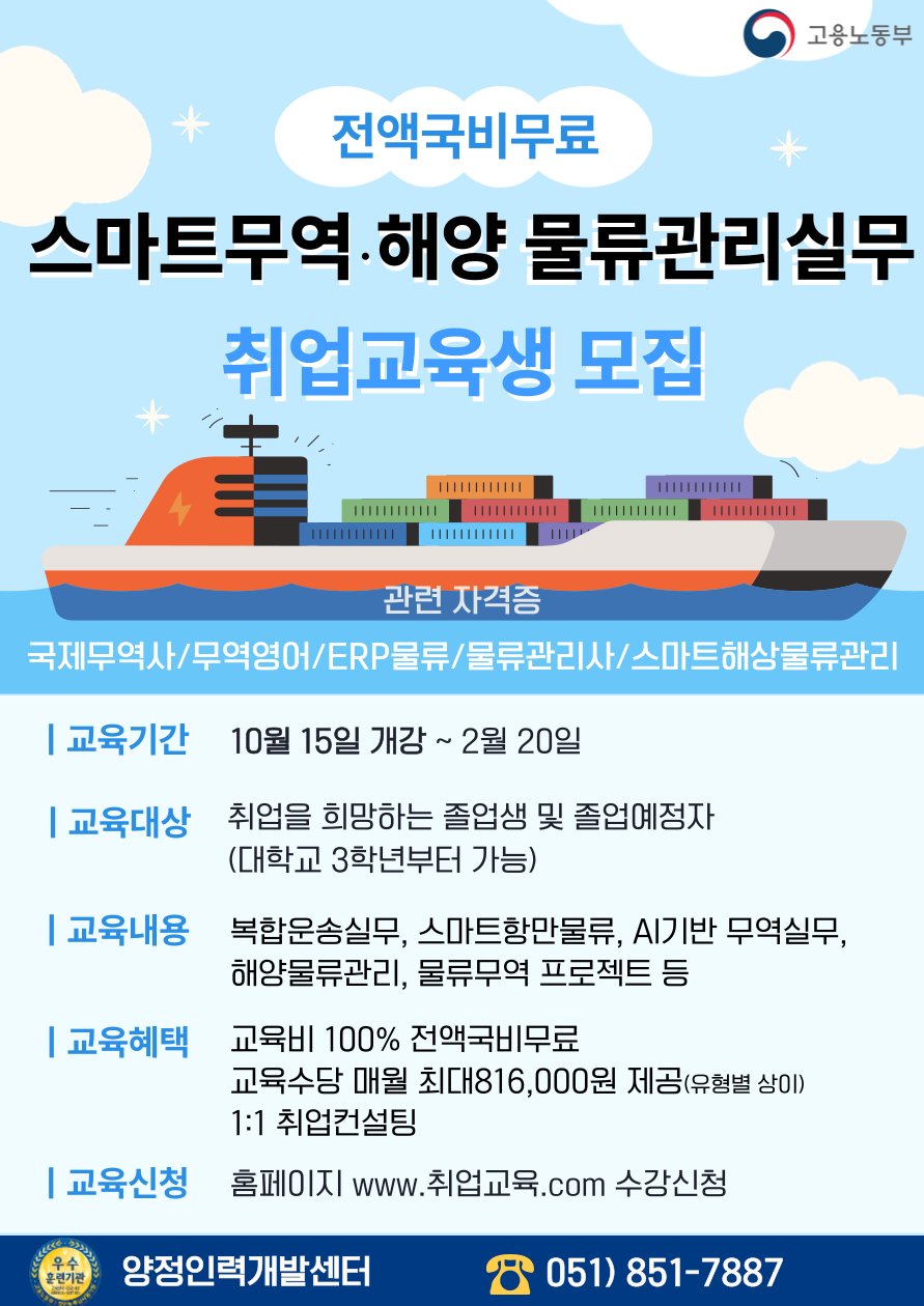 - 과정명 : 스마트무역?해양 물류관리 실무자 양성