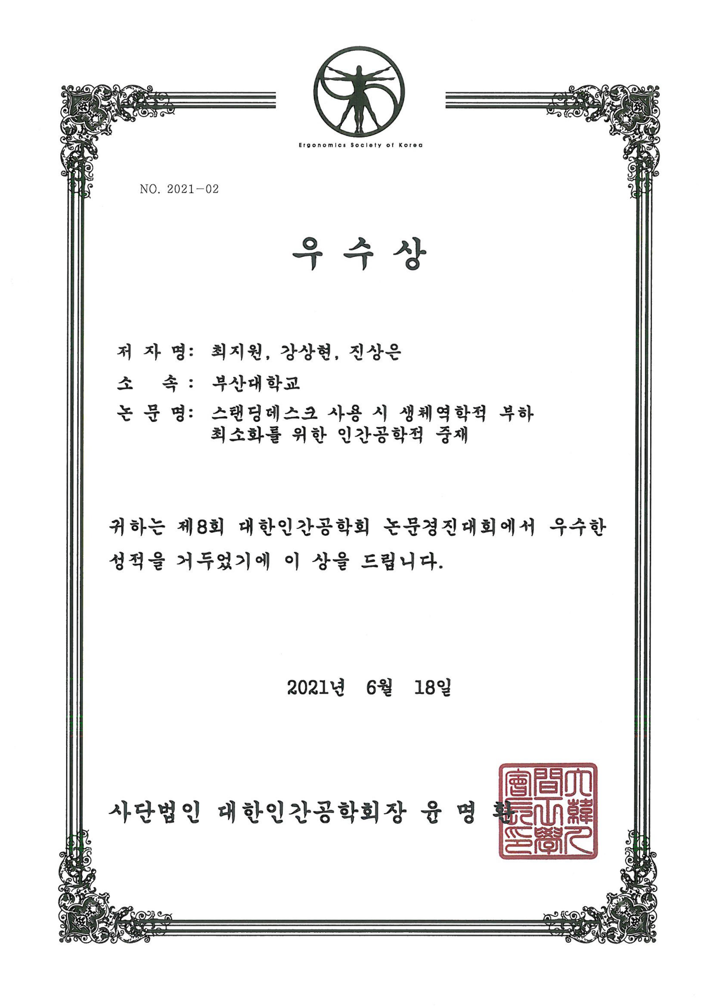 2021 춘계 대한인간공학회 논문경진대회 ‘우수상’ 수상
