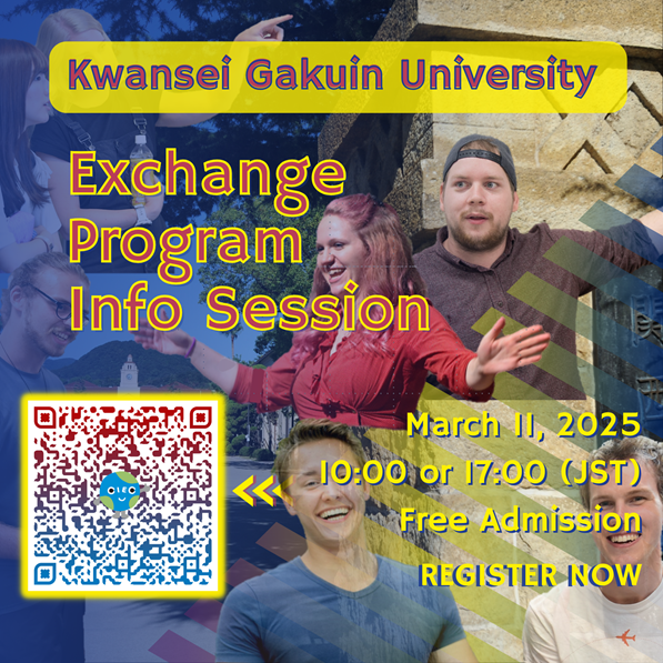 The KGU Incoming Team will host a couple of online information session in October for students who may be interested in studying in Japan from 2025 Fall Semester onward. The sessions will include a short greeting from Contemporary Japan Program Director Matthias HENNINGS (PhD), an introduction of the university and the exchange program, a mock class, as well as an introduction to KGU Campus life and a Q&A.