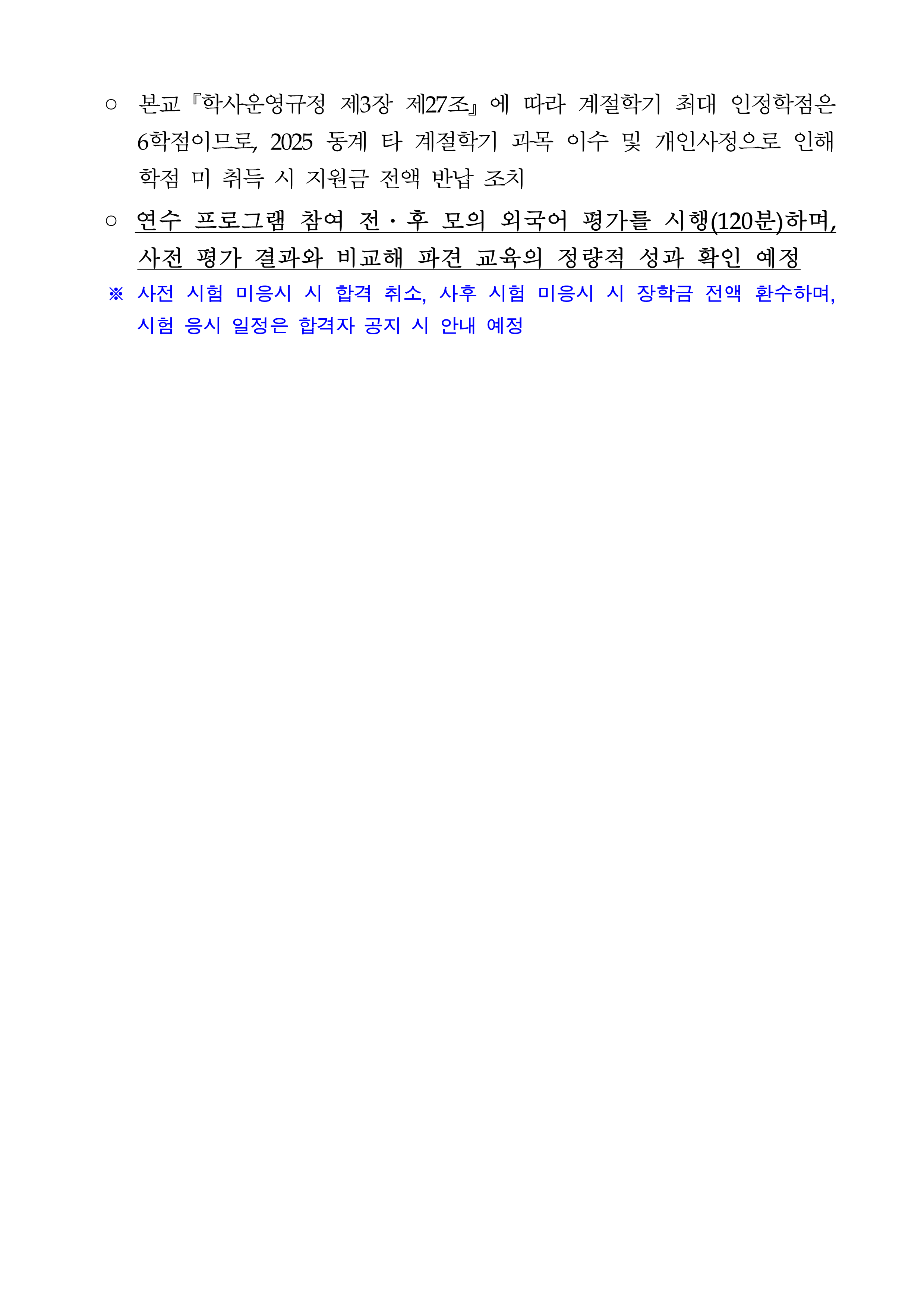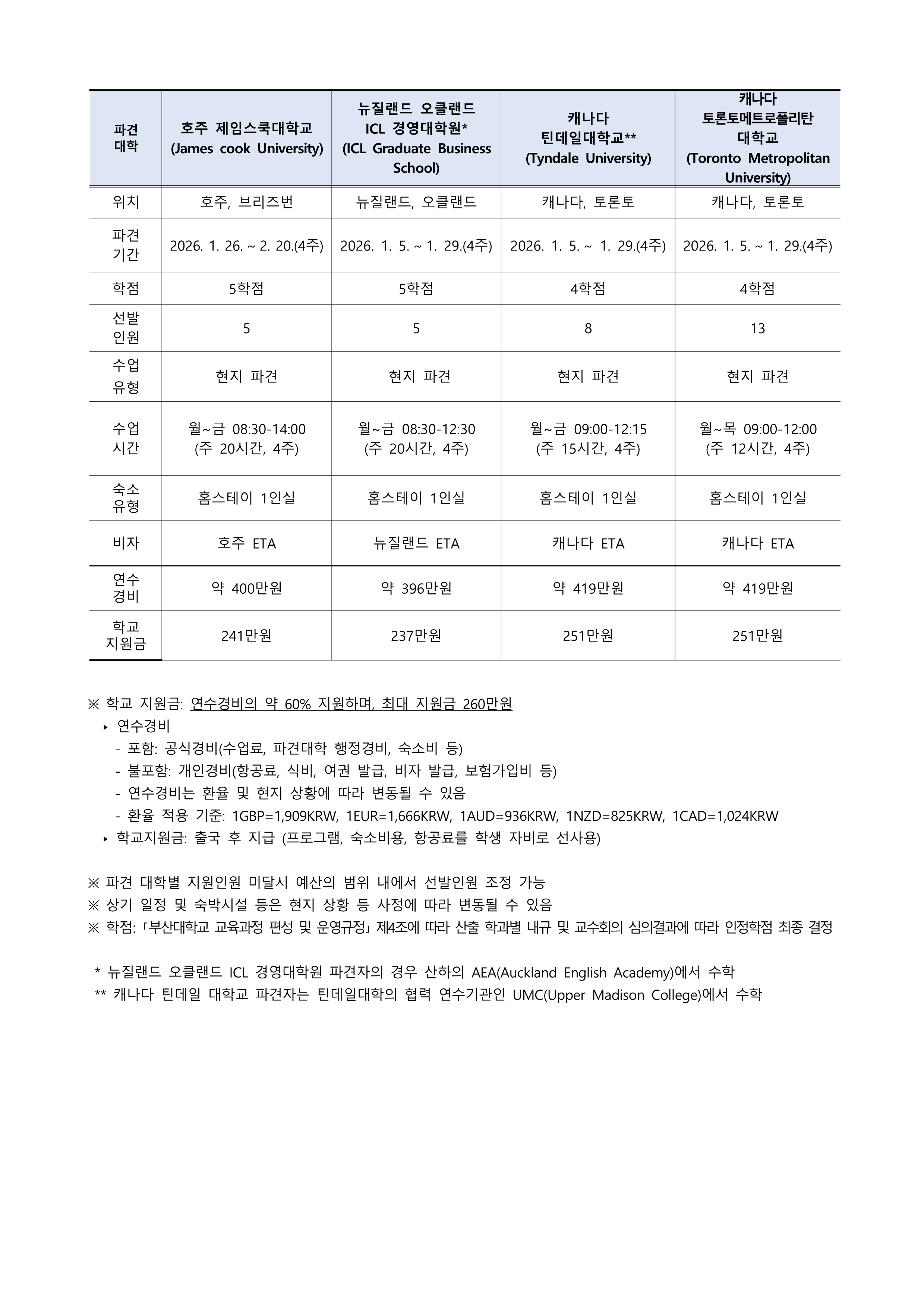 [단기파견] 2025학년도 동계 단기파견(영어연수) 프로그램 지원자 모집 안내