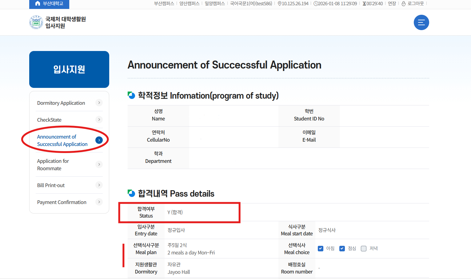 1. Result : Please check the website after 2026. 1. 9.(Fri) 18:00. (https://dorm.pusan.ac.kr/applys/login)