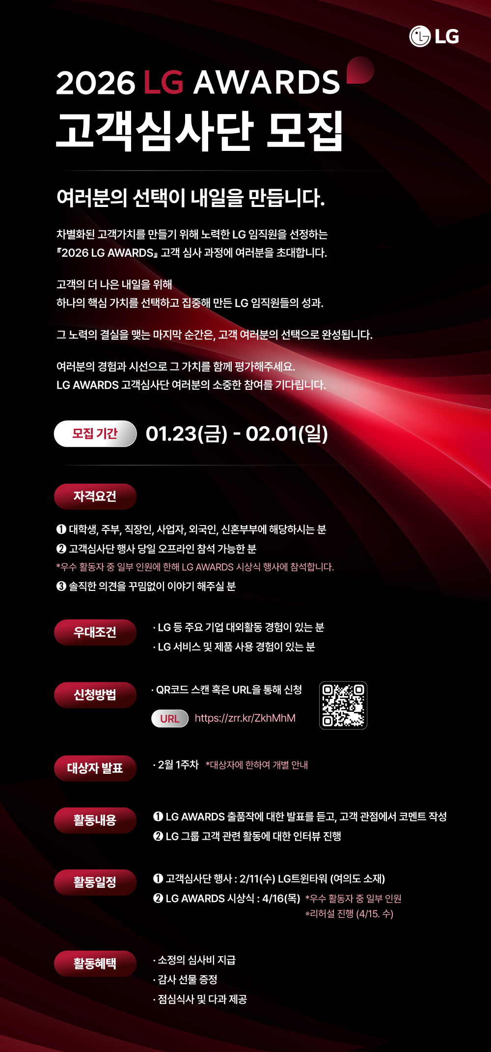 [대외활동] 「2026 LG AWARDS 고객심사단」모집 안내
