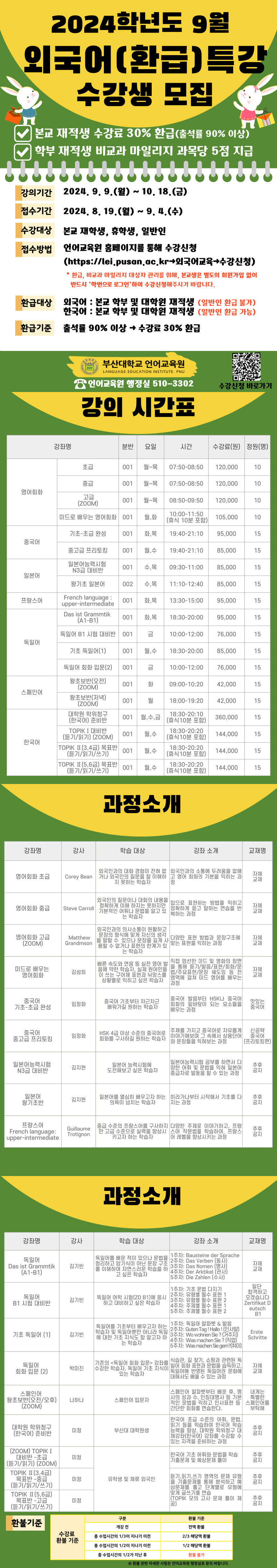 2024학년도 9월 FLP(Foreign Language Programs) 외국어 (환급) 특강 수강생 모집 안내