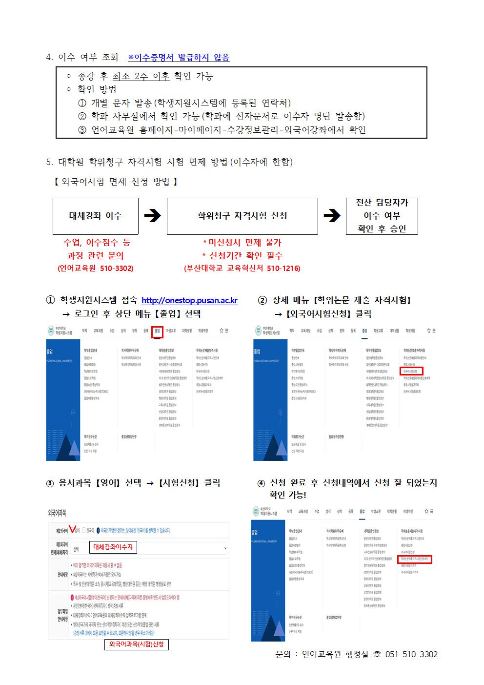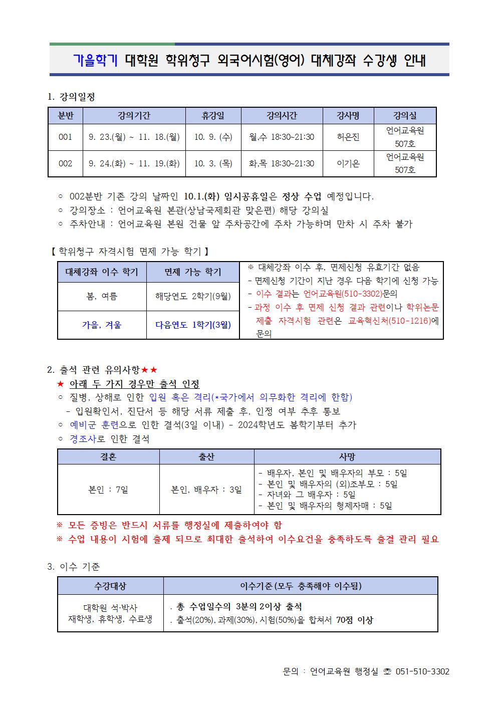 가을학기 대학원 학위청구 대체강좌 외국어시험(영어) 대체강좌 개강 안내