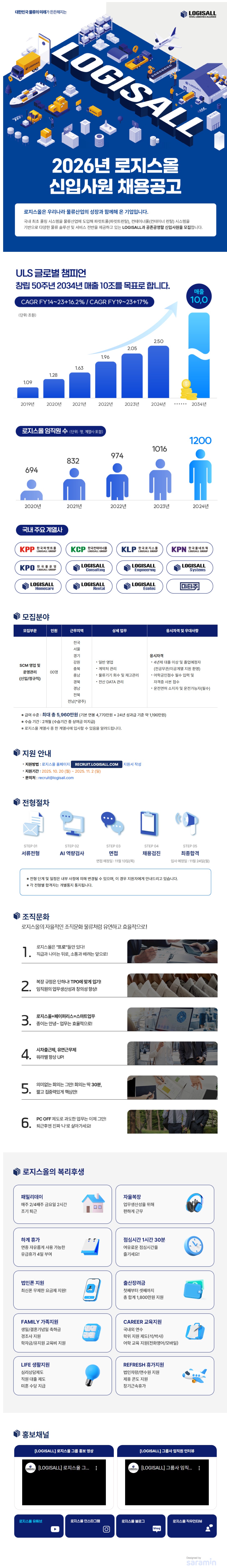 2026년 로지스올 신입사원 추천채용을 아래와 같이 알려드리니, 소속 학생이 지원할 수 있도록 학과 홈페이지 등을 통해 적극적으로 안내하여 주시기 바랍니다.