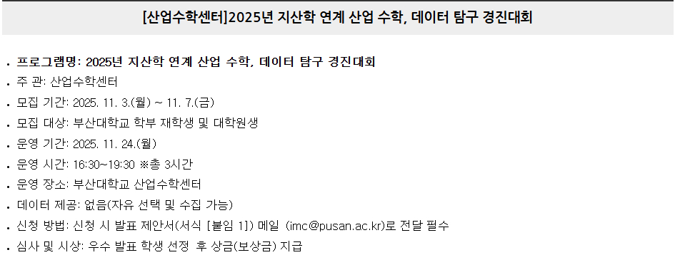 [산업수학센터] 2025년 지산학 연계 산업수학, 데이터 탐구 경진대회