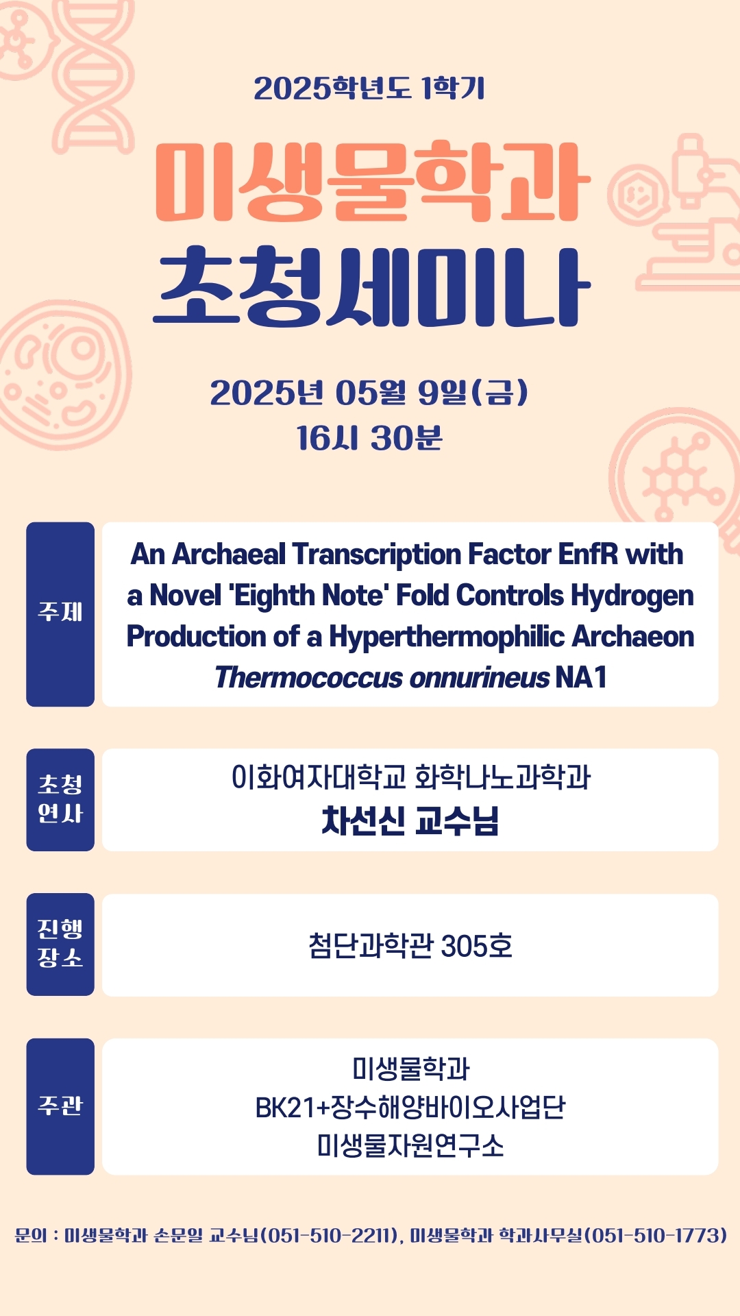 미생물학과에서 아래와 같이 초청세미나를 개최하오니 관심 있는 분들의 많은 참석 부탁 드립니다.